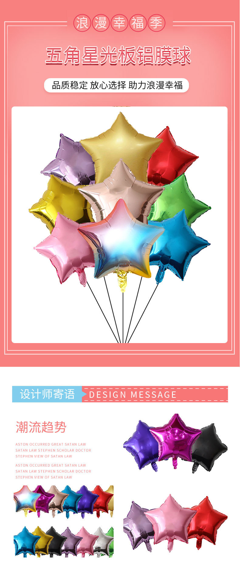5/10/ 18inch 오각별 풍선 광택 알루미늄 필름 풍선 웨딩 생일 장식 용품 도매
