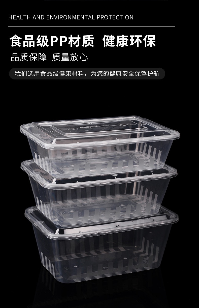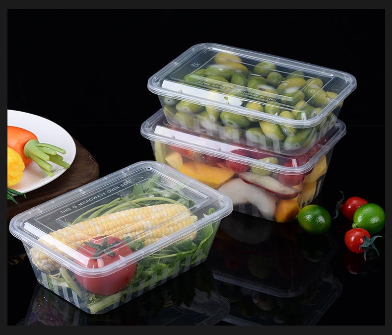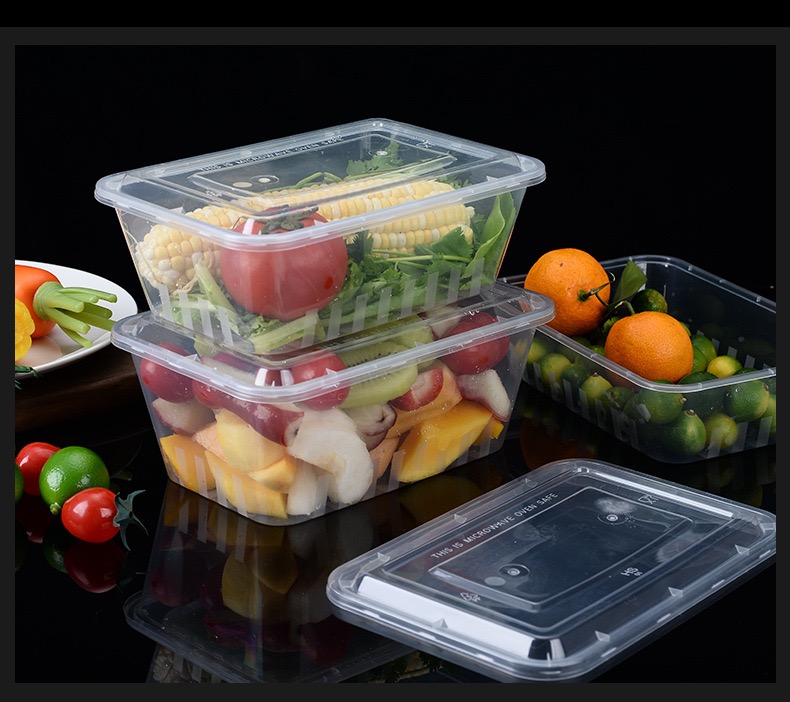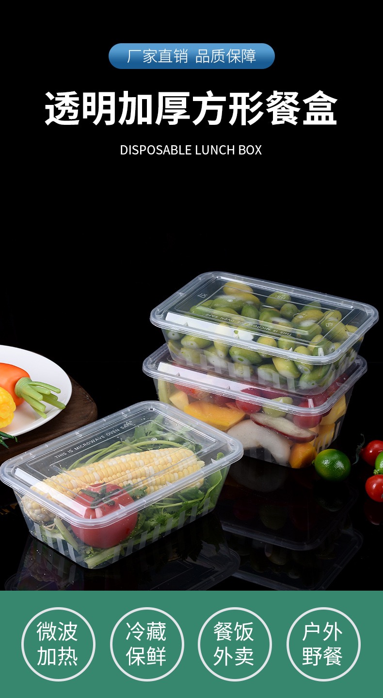 직사각형 일회용 도시락 플라스틱 테이크 아웃 포장 상자 대형 투명 식기 패스트 푸드 라운드 도시락 뚜껑