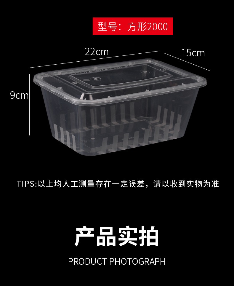 • 직사각형 2000ML 투명 (뚜껑 포함 20세트) vvvv