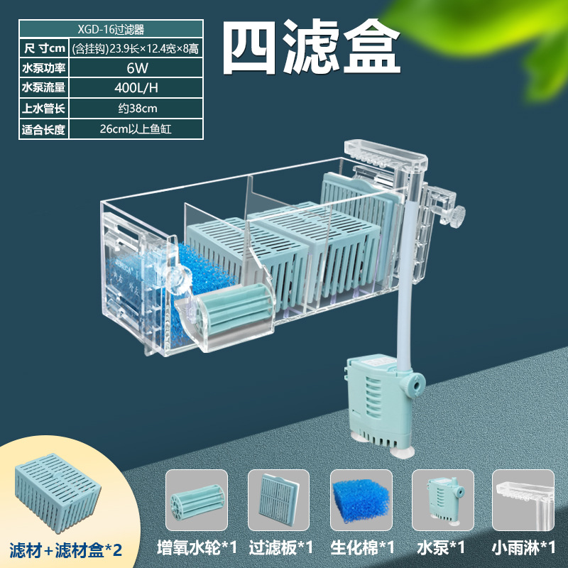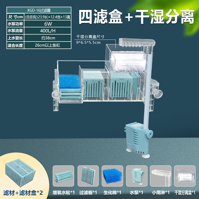 수조 필터, 물 순환, 3-in-1 워터 펌프, 정수기, 내장형 외부 필터 박스, 드립 박스