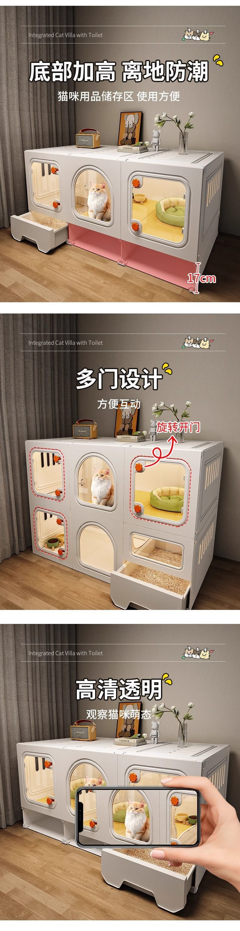 고양이 케이지 고양이 빌라 화장실 통합 가구 실내 작은 아파트 고양이 케이지 1 룸 건강 1 홀 고양이 집스토어 가기
