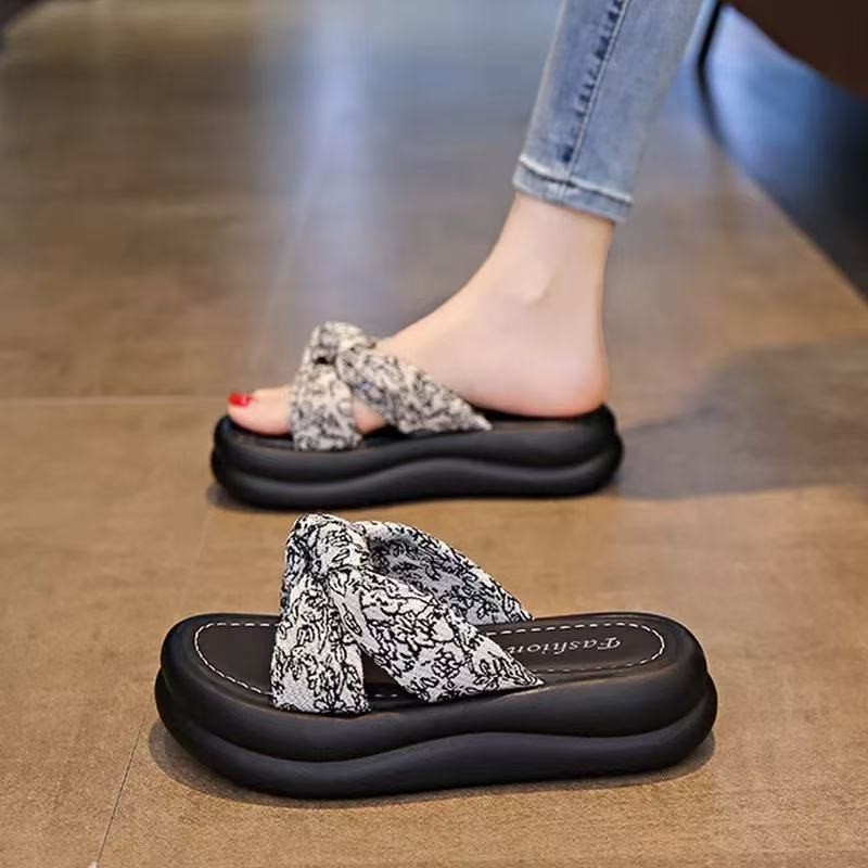 여성을위한 요정 스타일 샌들 2025 여름 새로운 두꺼운 밑창 캐주얼 비치 샌들 세련되고 다재다능한 중국 슬리퍼스토어 가기