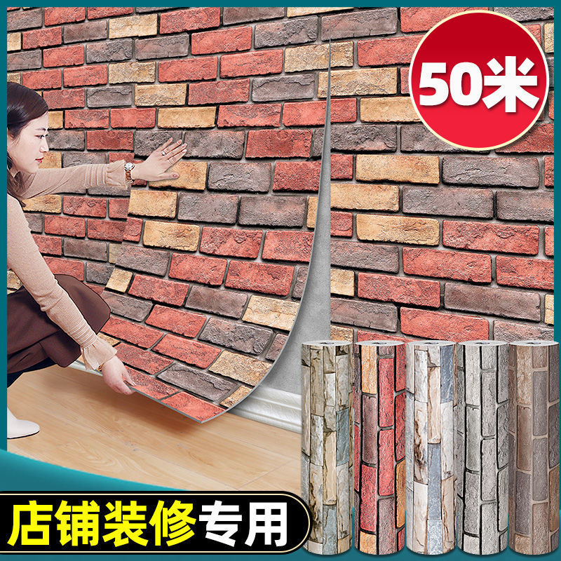 벽지 50m 자체 접착 방수, 방습 및 곰팡이 방지 벽 천 3D 입체 벽 스티커 벽지 레스토랑 호텔 혁신 벽 스티커스토어 가기