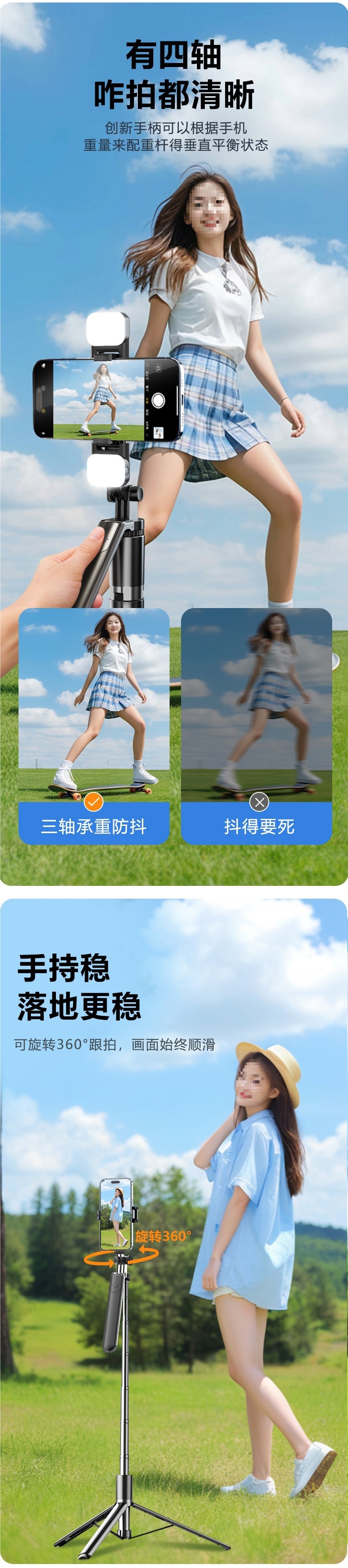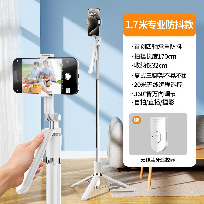 • 흰색【1.7m 손떨림 방지 모델】4축 손떨림 방지◆브이로그 후속촬영◆탄소강 샤프트◆블루투스 원격 제어