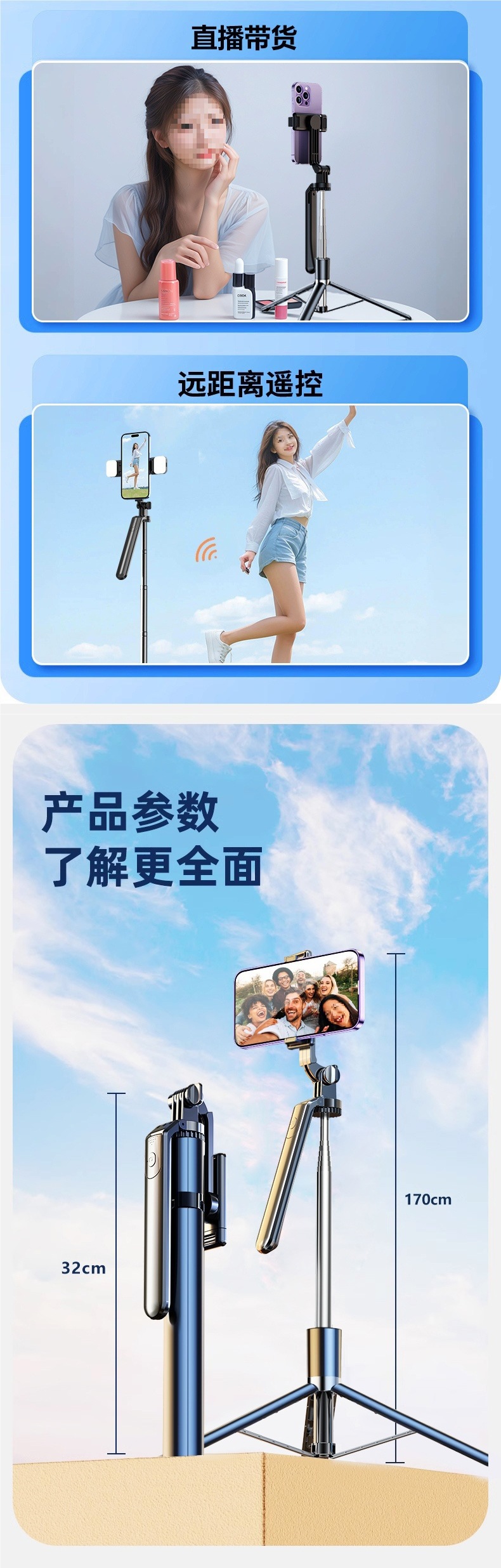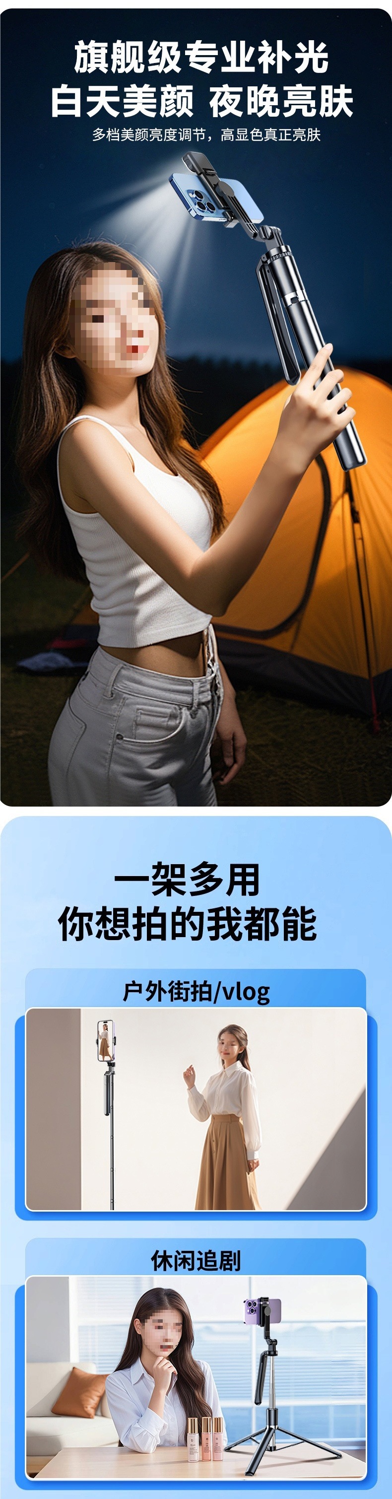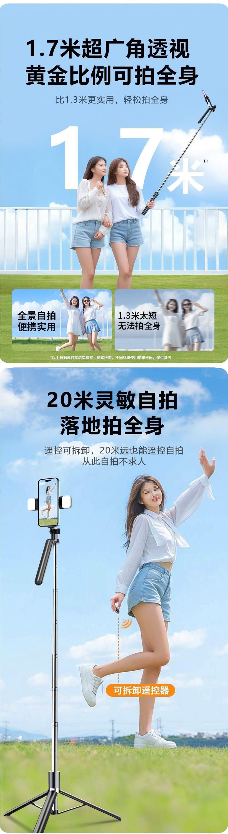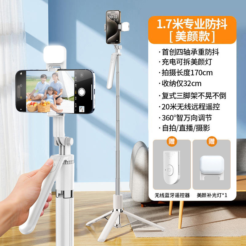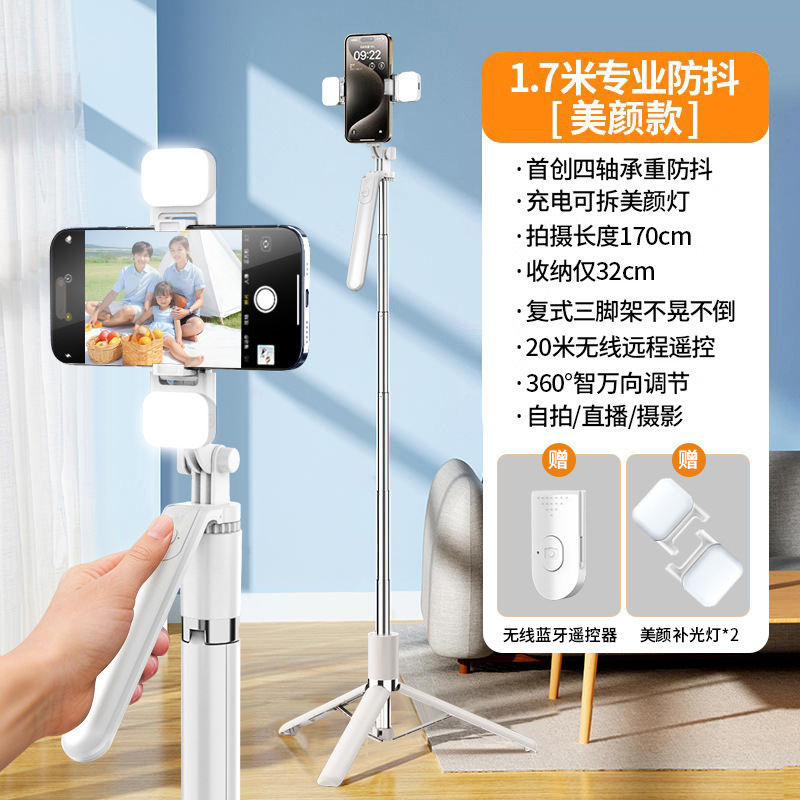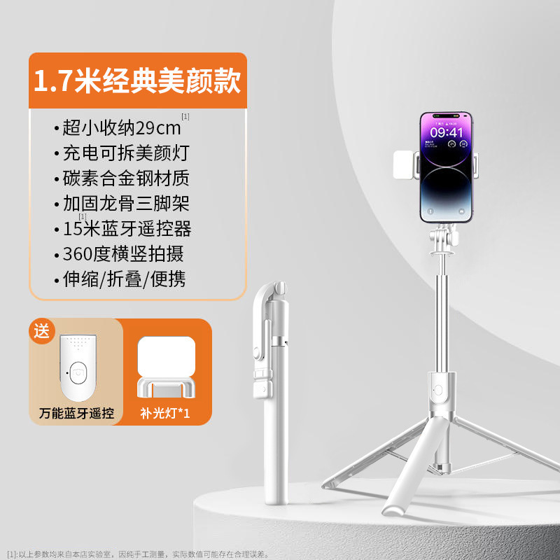 • 화이트【1.7m 클래식】+뷰티 램프 x1◆용골 강화 삼각대◆360°파노라마 샷◆블루투스 원격 제어
