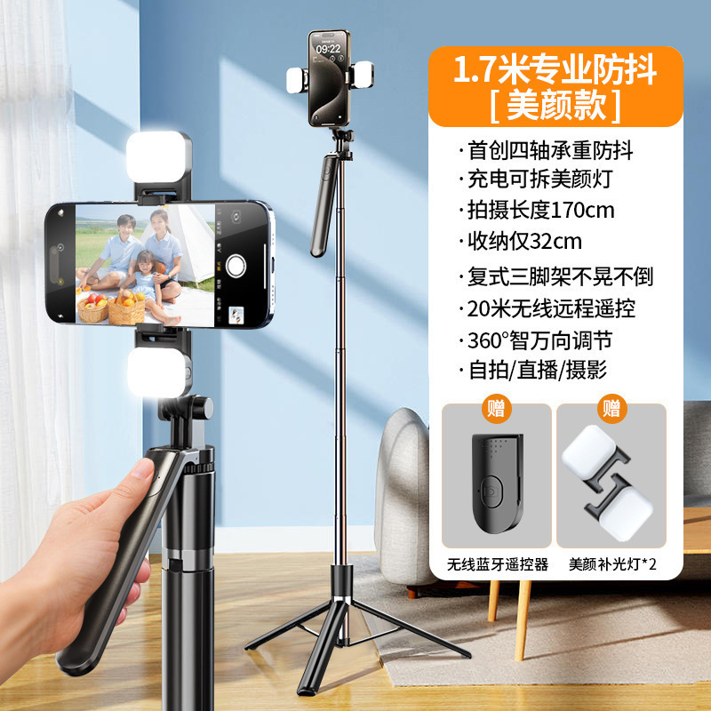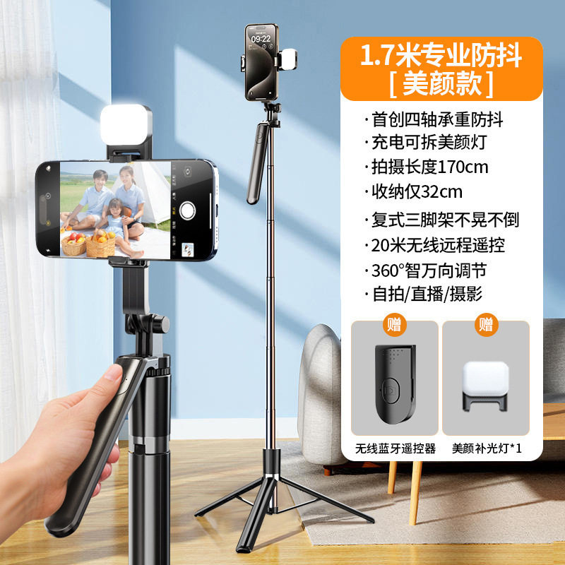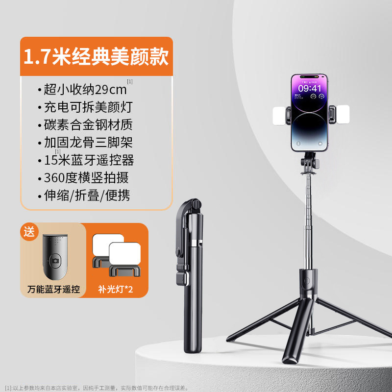 • 블랙【1.7m 클래식】+뷰티 램프 x2◆용골 강화 삼각대◆360°파노라마 샷◆블루투스 원격 제어