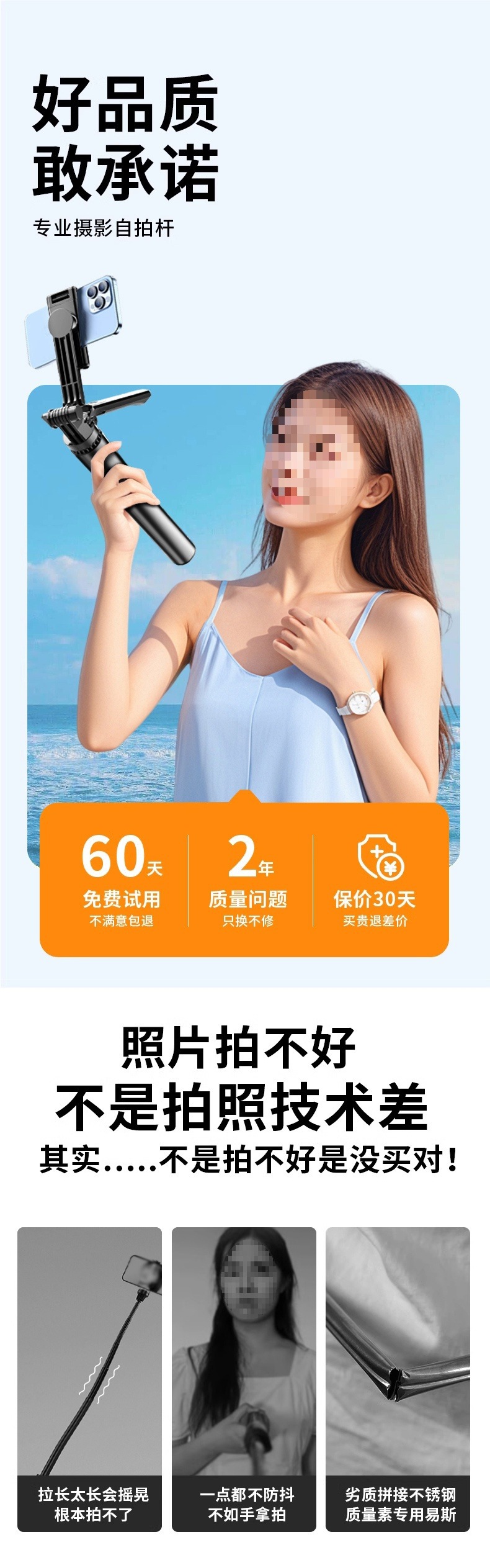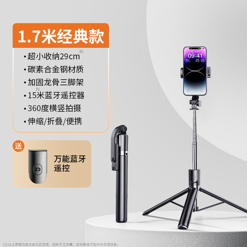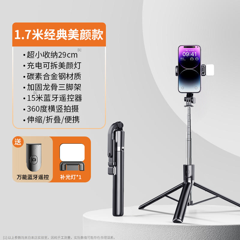• 블랙【1.7m 클래식】+뷰티 램프 x1 ◆ 용골 강화 삼각대 ◆ 360 ° 파노라마 샷 ◆ 블루투스 원격 제어