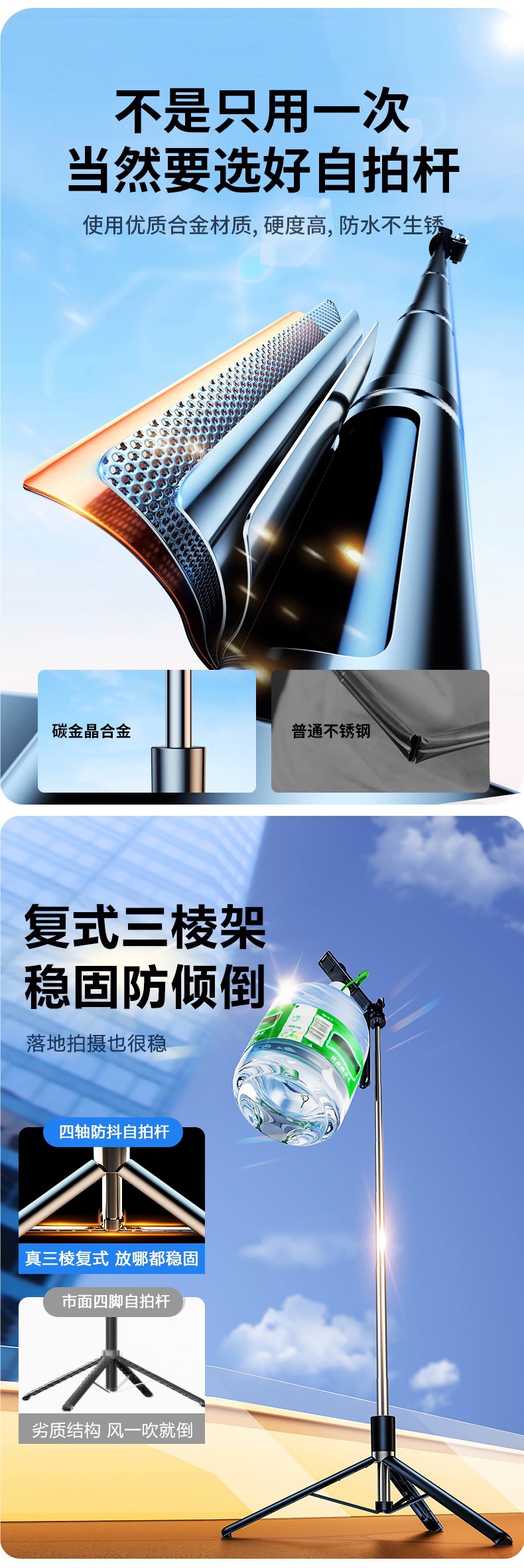 • 블랙【1.7m 손떨림 방지 모델】4축 손떨림 방지◆브이로그 후속촬영◆탄소강 샤프트◆블루투스 원격 제어
