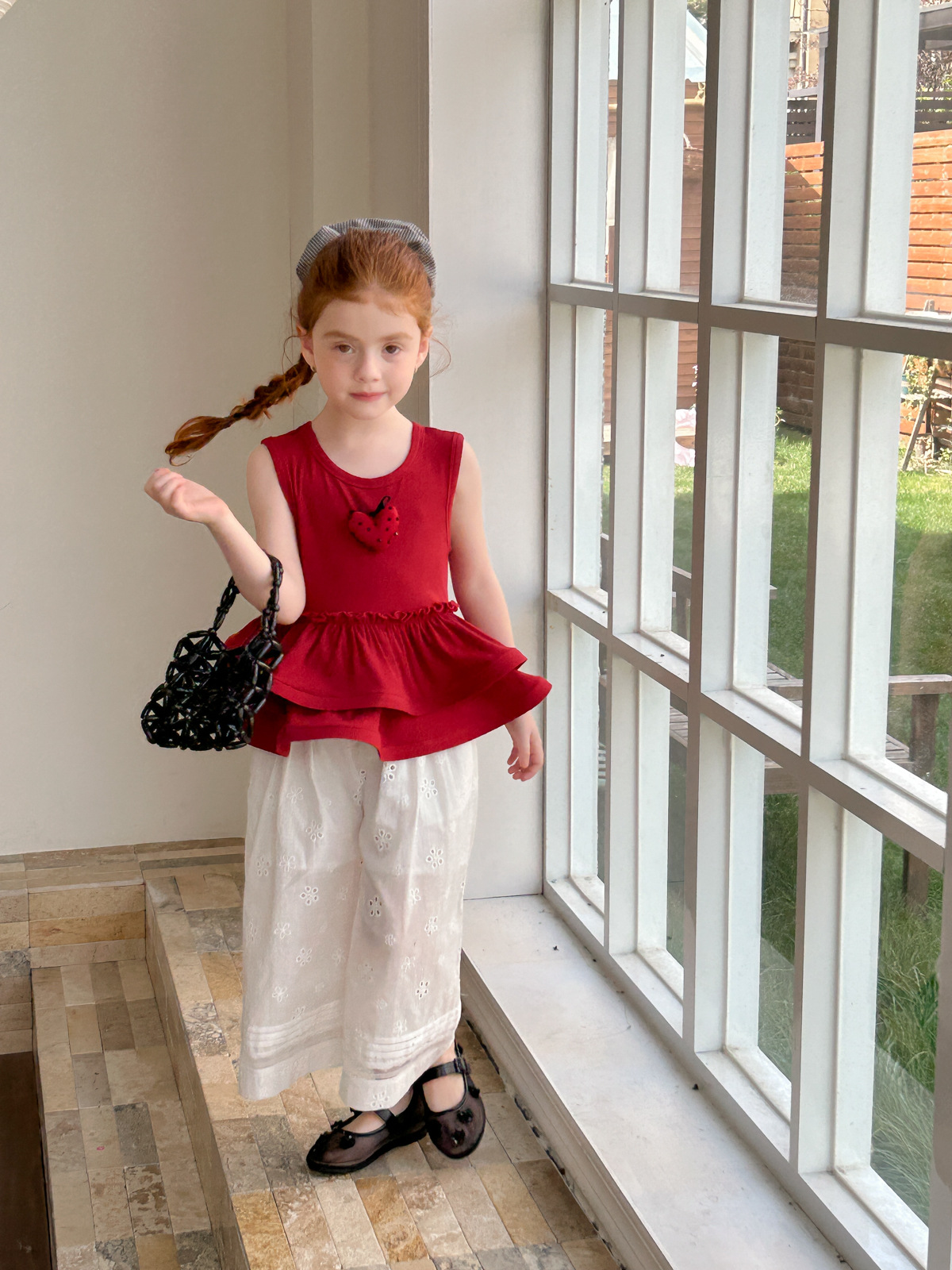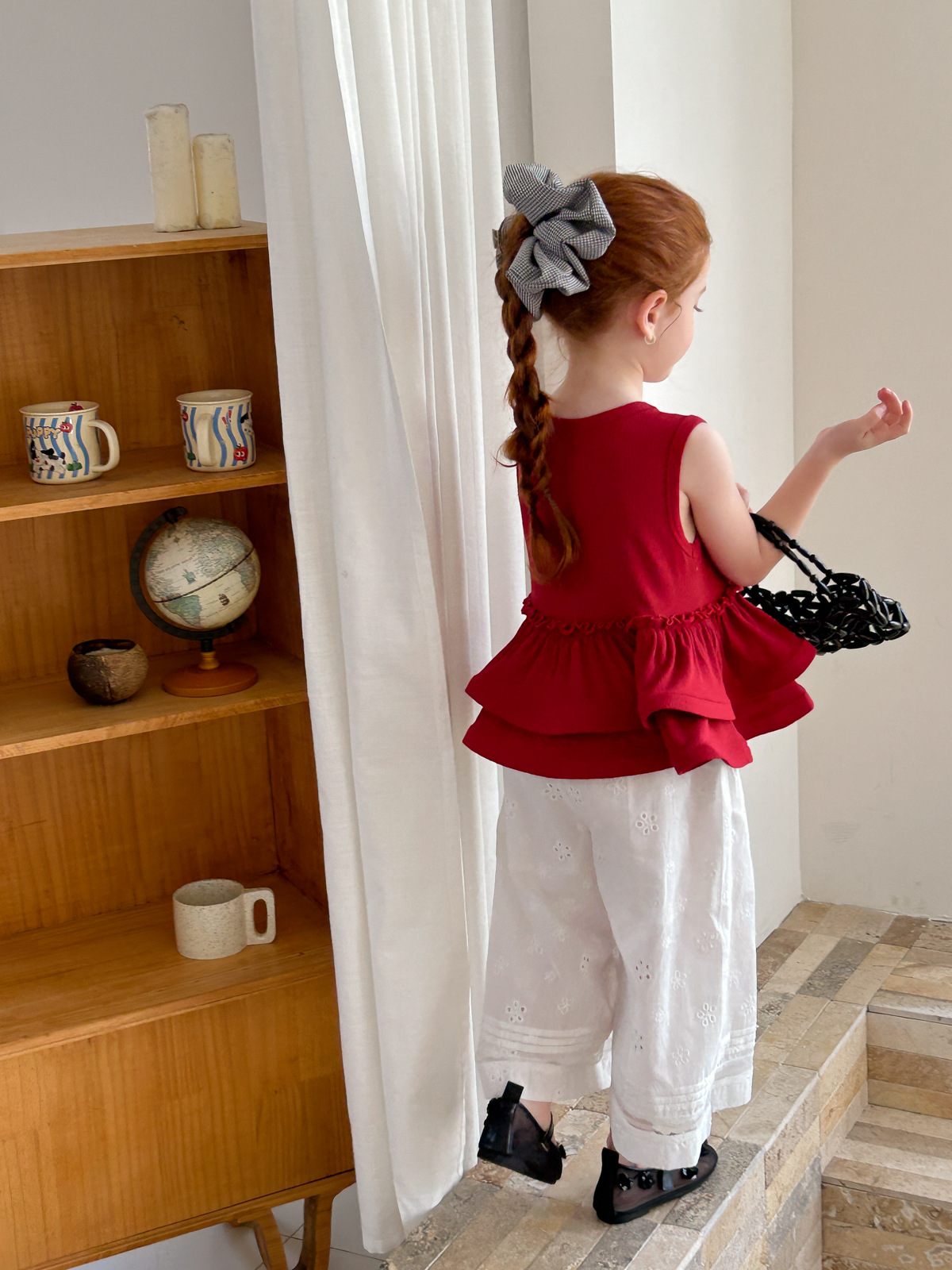 2025 여자 프랑스어 부드러운 휴가 스타일 중공 자수 와이드 레그 바지 어린이 여름 새로운 느슨한 통기성 바지