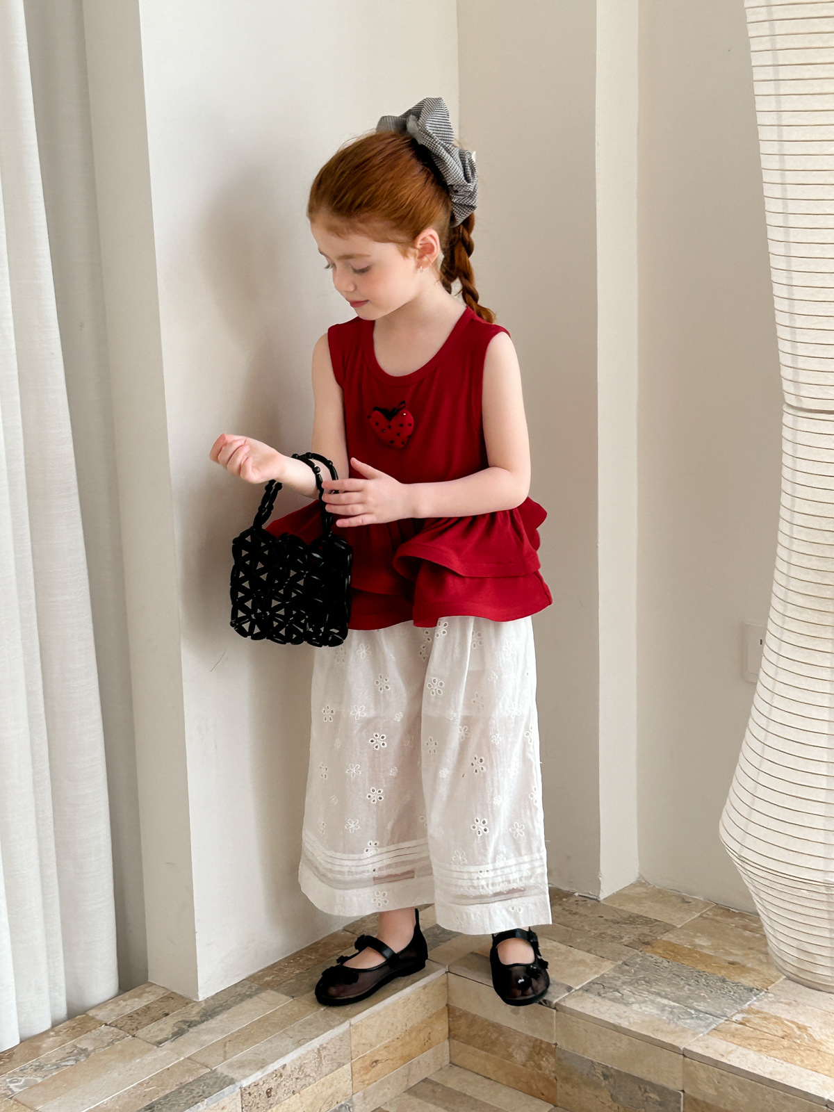 2025 여자 프랑스어 부드러운 휴가 스타일 중공 자수 와이드 레그 바지 어린이 여름 새로운 느슨한 통기성 바지스토어 가기