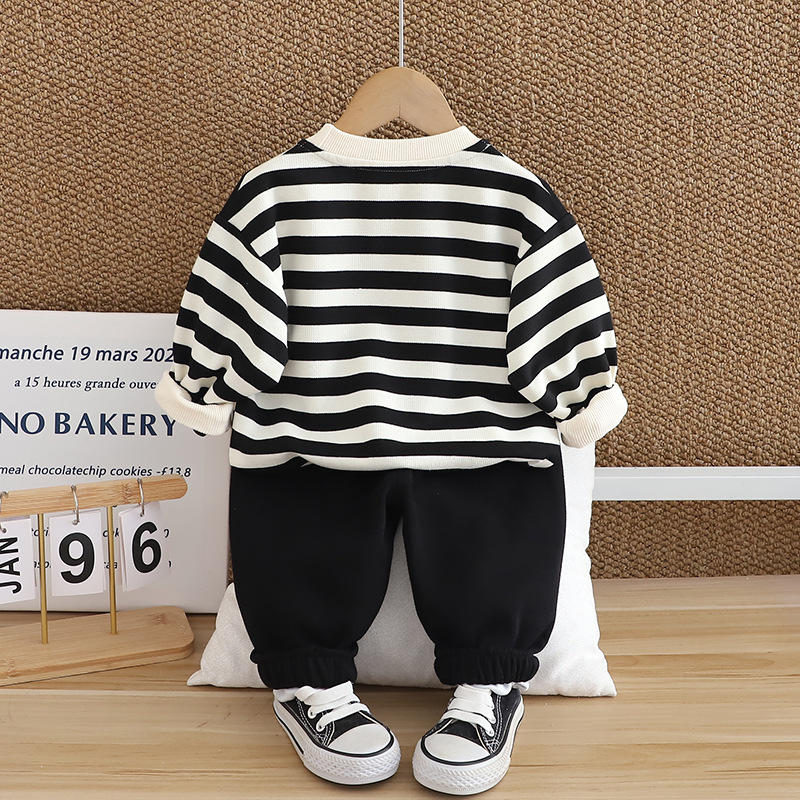 2025 새로운 남성과 여성의 어린이 봄과 가을 서양식 남성과 아기의 여성 아기의 긴 소매 땀 투피스 세트스토어 가기
