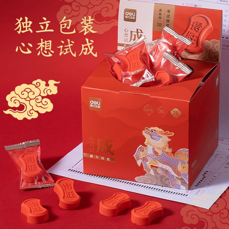 Deli V34 스크랩 고무 2b Qiqi, 스크랩없는 슈퍼 깨끗하고 추적없는 테스트 스킨으로 닦은 붉은 학생 우승