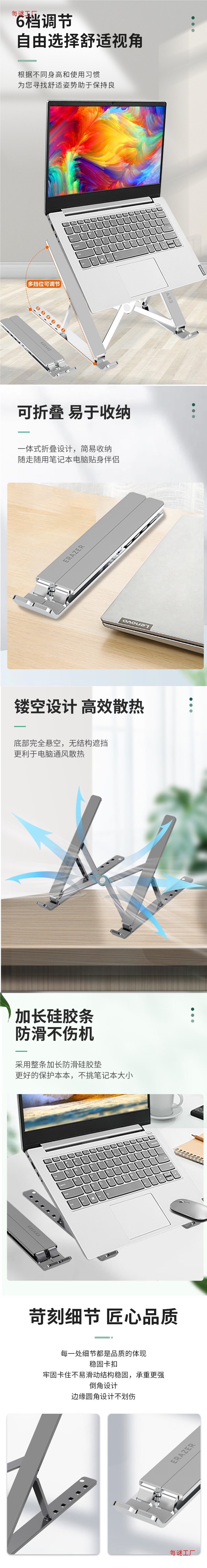 휴대용 브래킷 알루미늄 합금베이스 데스크탑 증가를 접히는 생태 전원 노트북 스탠드스토어 가기