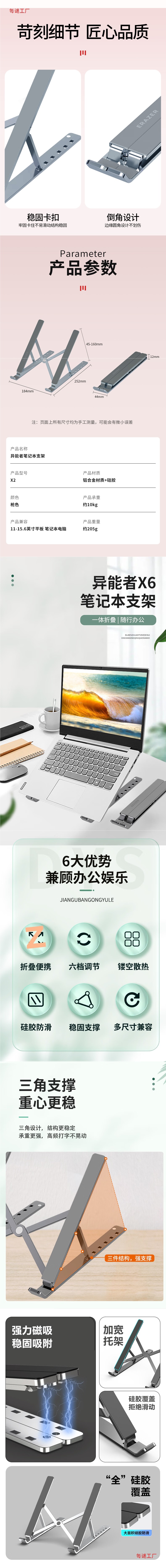 휴대용 브래킷 알루미늄 합금베이스 데스크탑 증가를 접히는 생태 전원 노트북 스탠드