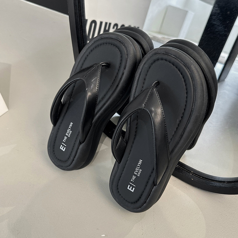 여름 아우터용 여성용 인터넷 연예인 블랙 미끄럼 방지 두꺼운 밑창 슬리퍼 2025 새로운 슈퍼 핫 다용도 비치 샌들