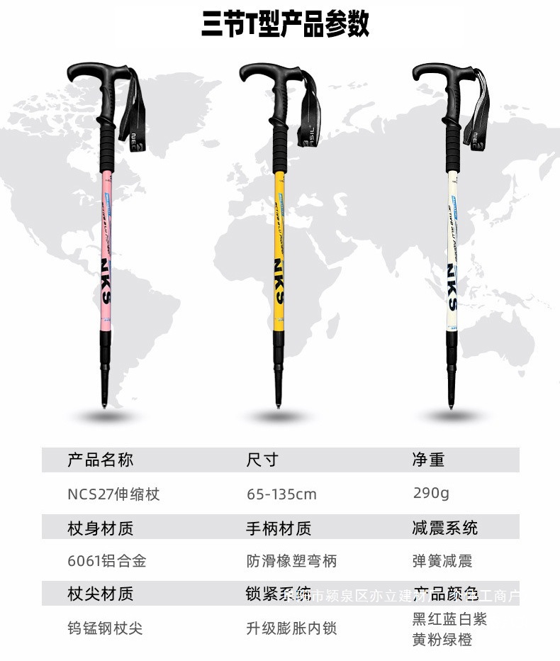 다기능 등산 지팡이, 알루미늄 합금 텔레스코픽 야외 등산 지팡이, 등산 지팡이, 가벼운 지팡이, 하이킹