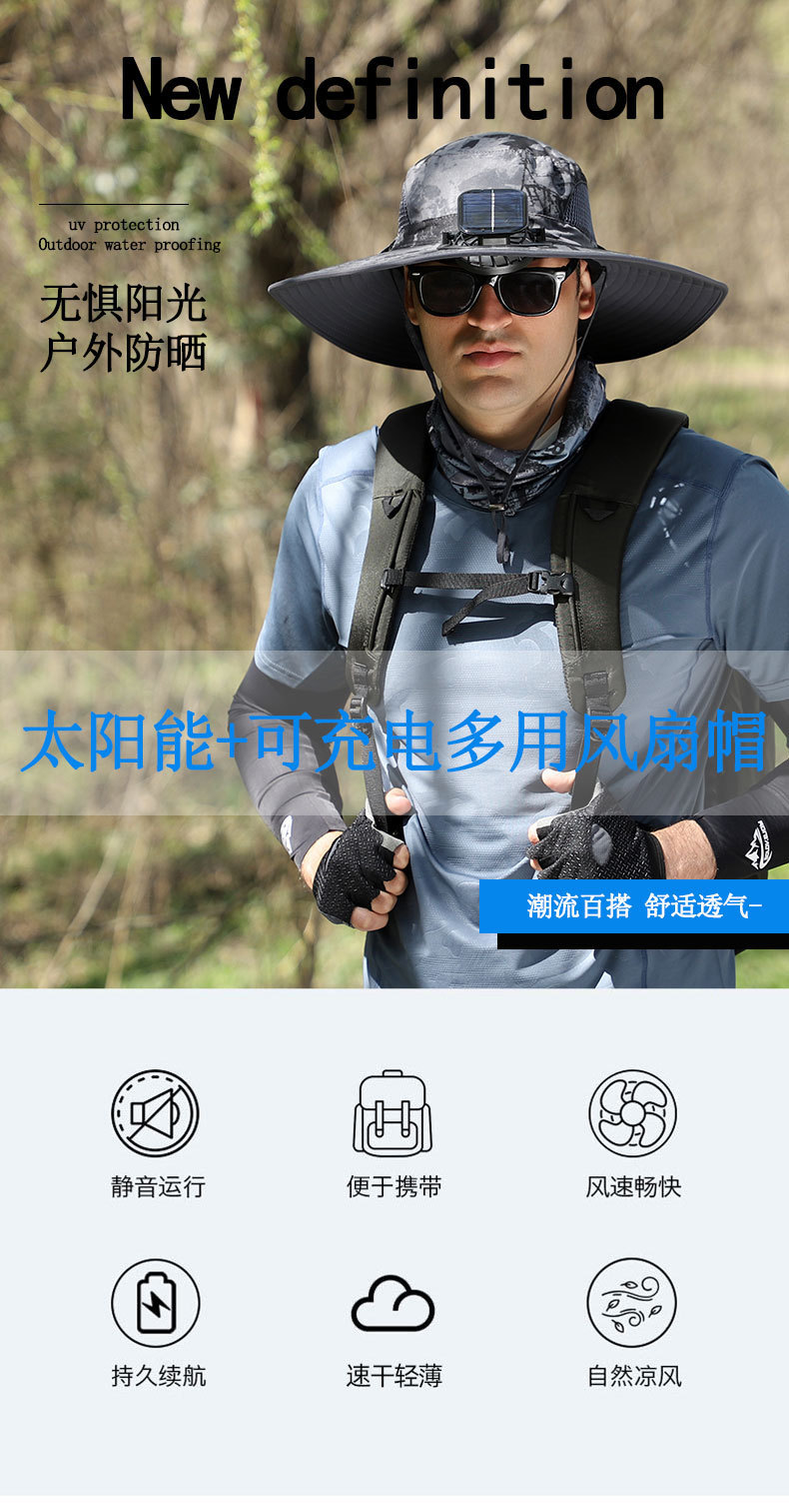 탈착식 국경 간 인기 태양열 충전 팬 대형 챙 모자 여름 야외 태양 모자 남성용 등산 낚시 모자스토어 가기