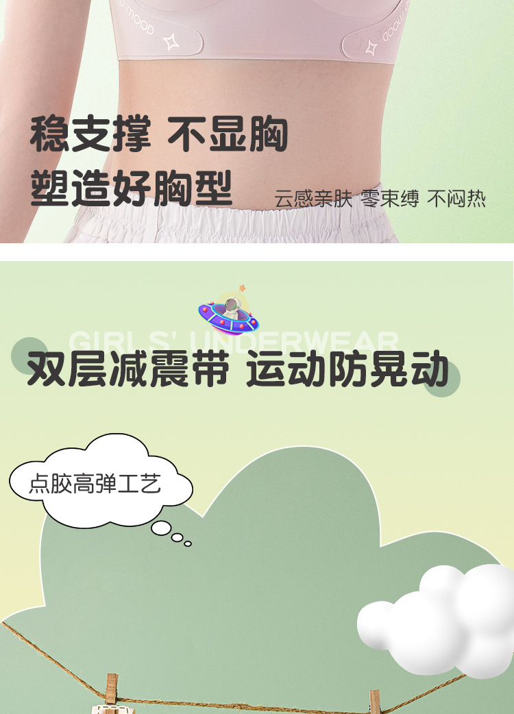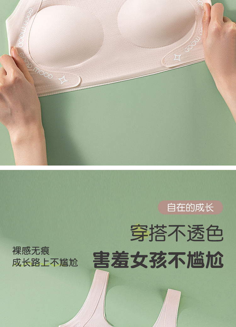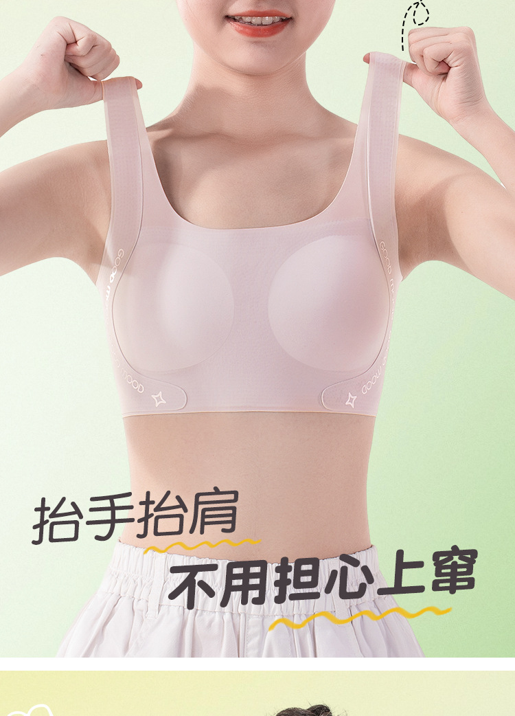 발달기 와이어 프리 중학생 여아 속옷, 심리스 아이스 실크 브라, 고등학생 여아 스포츠 충격 방지 조끼스토어 가기