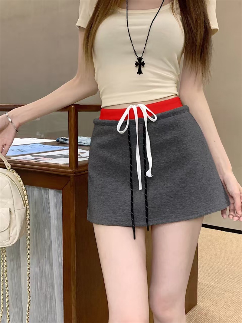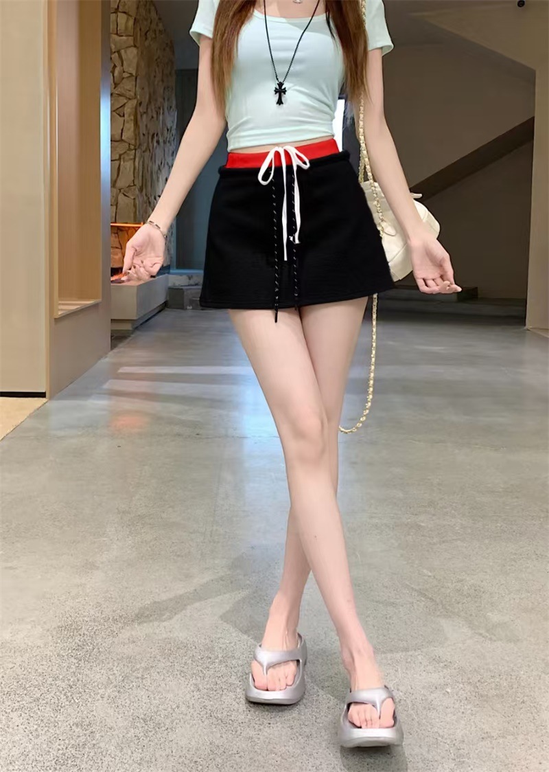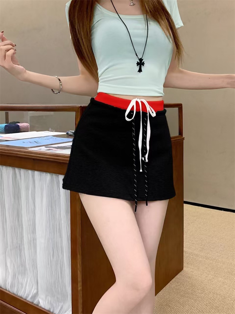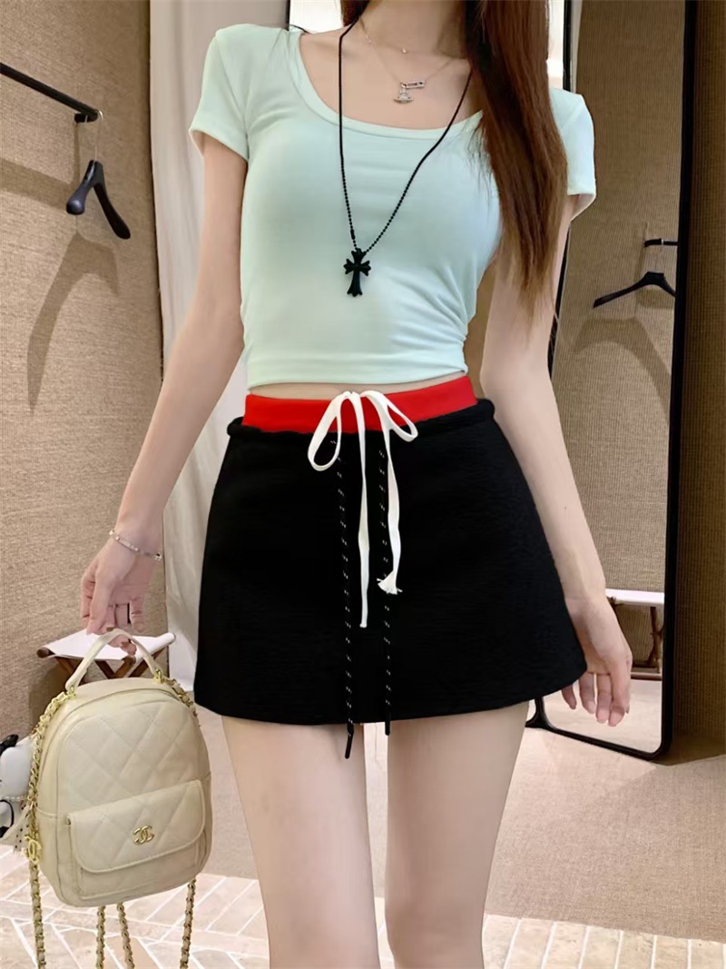 [Weisi] 2025 신상 여름 스타일 대비 컬러 페이크 투피스 스커트 하이웨이스트 슬리밍 핫걸 다용도 힙 커버 스커트