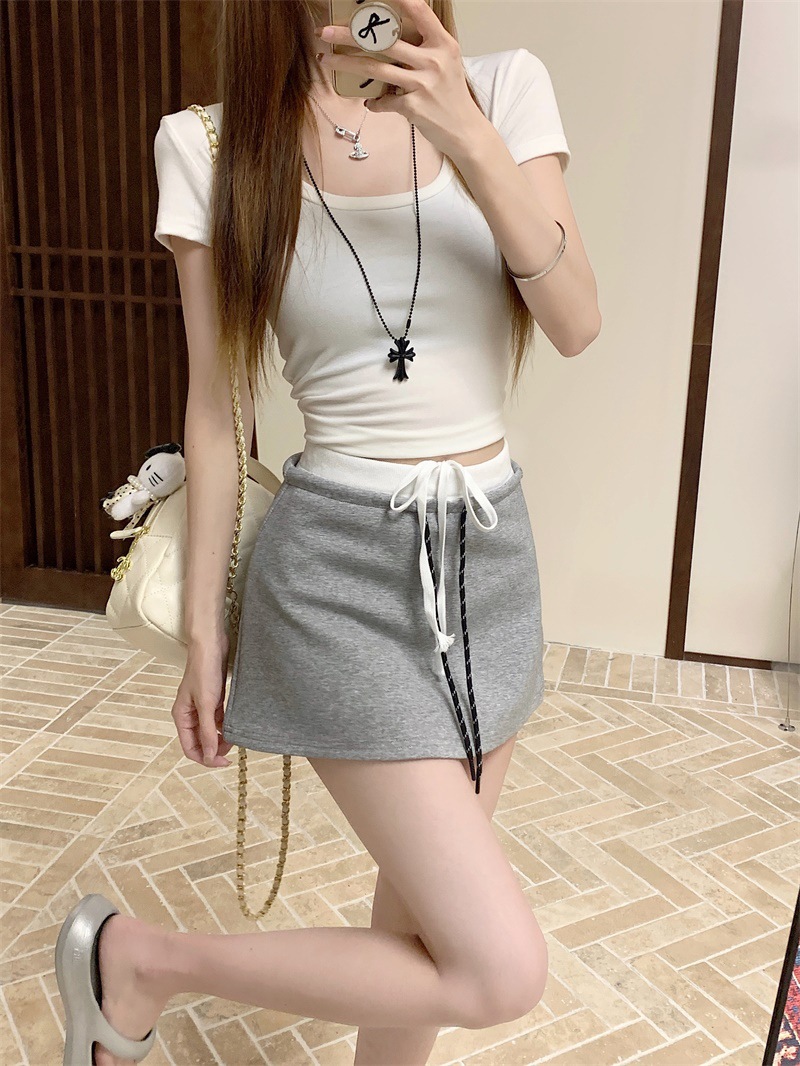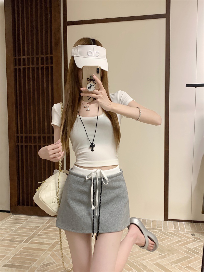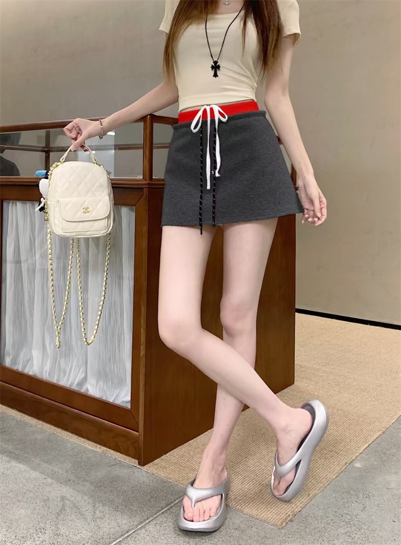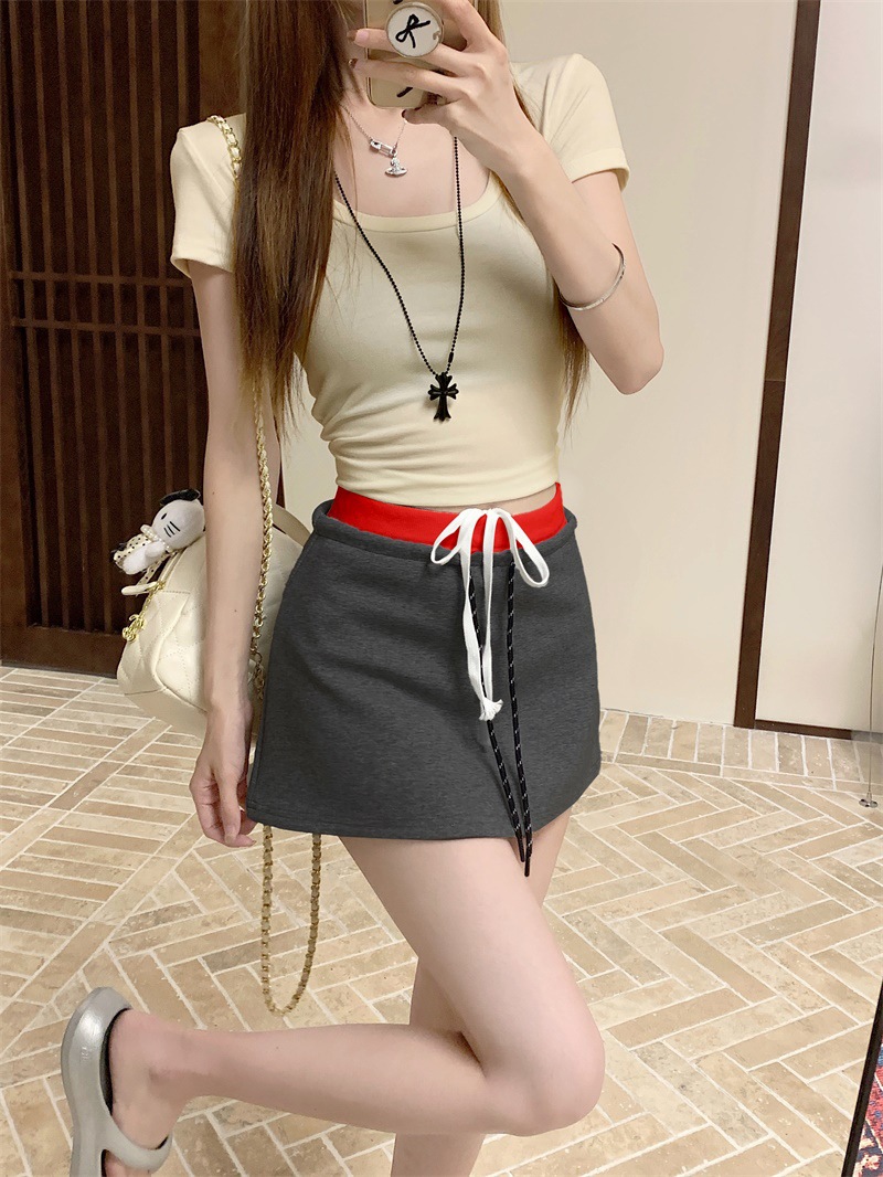 [Weisi] 2025 신상 여름 스타일 대비 컬러 페이크 투피스 스커트 하이웨이스트 슬리밍 핫걸 다용도 힙 커버 스커트