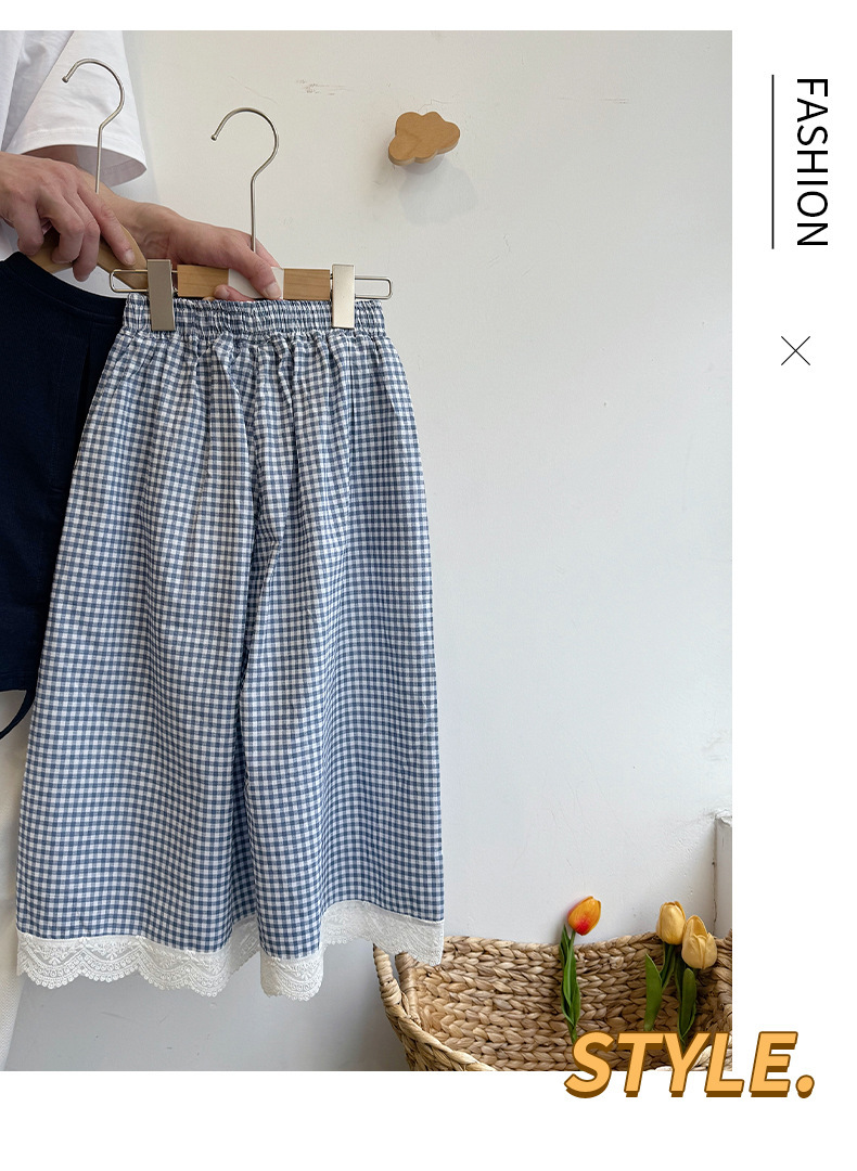 2025秋季中大女童拼接蕾丝花边牛仔裤中裤长裤设计感喇叭裤阔腿裤