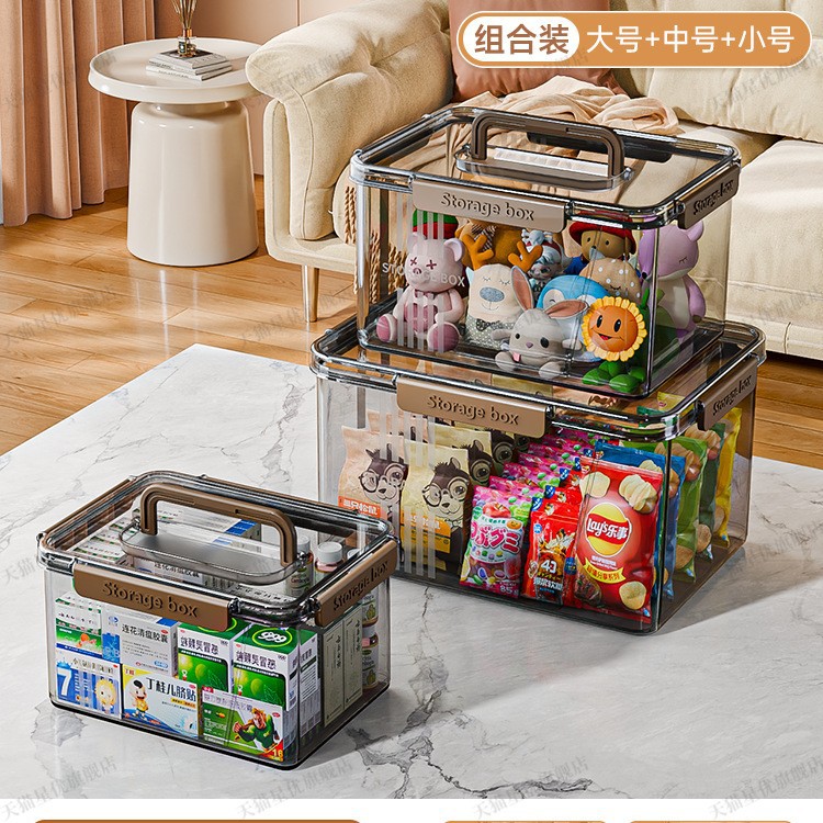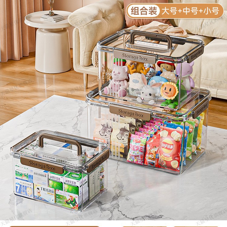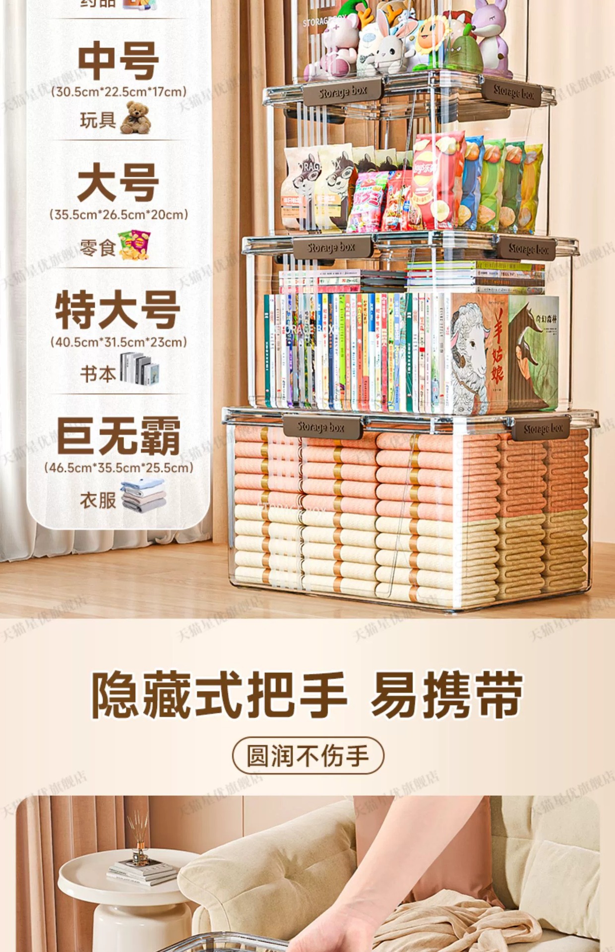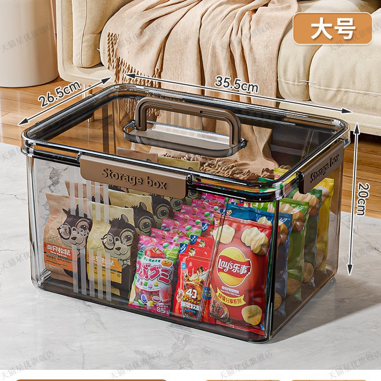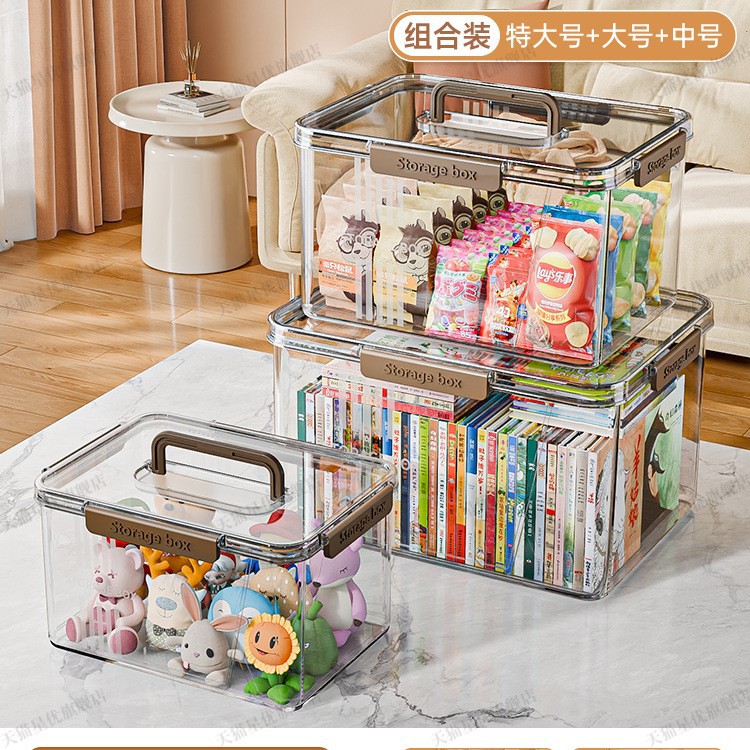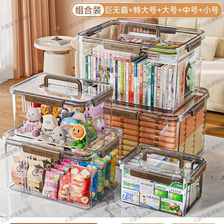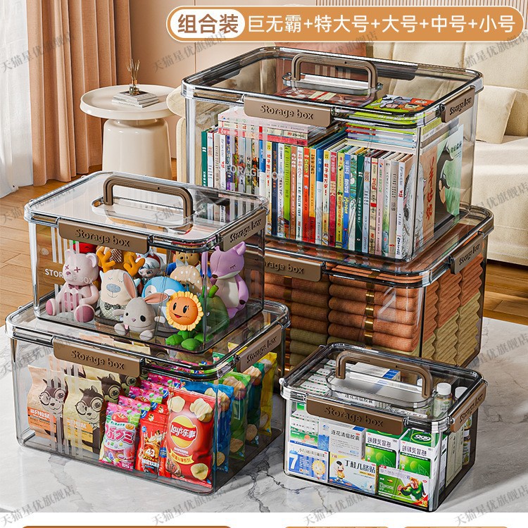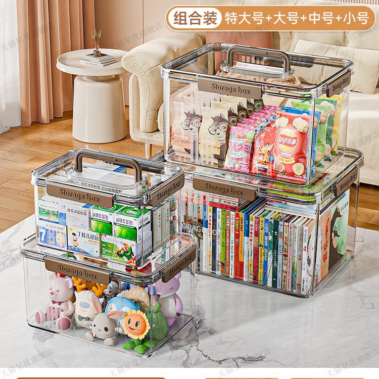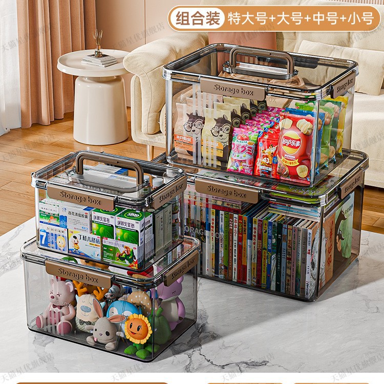저장 상자 가정용 옷 장난감 간식 책 투명한 주최자 대용량 플라스틱 휴대용 밀봉 된 저장 상자