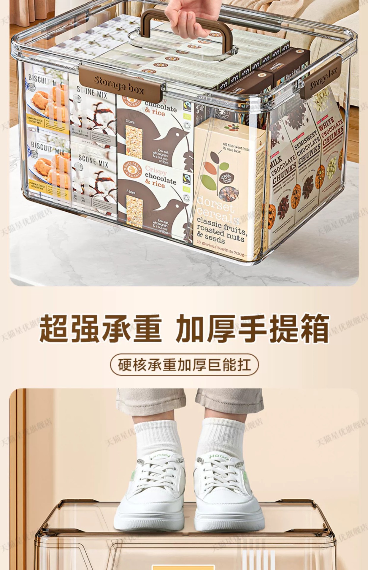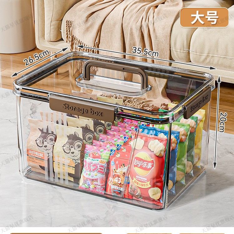 저장 상자 가정용 옷 장난감 간식 책 투명한 주최자 대용량 플라스틱 휴대용 밀봉 된 저장 상자스토어 가기