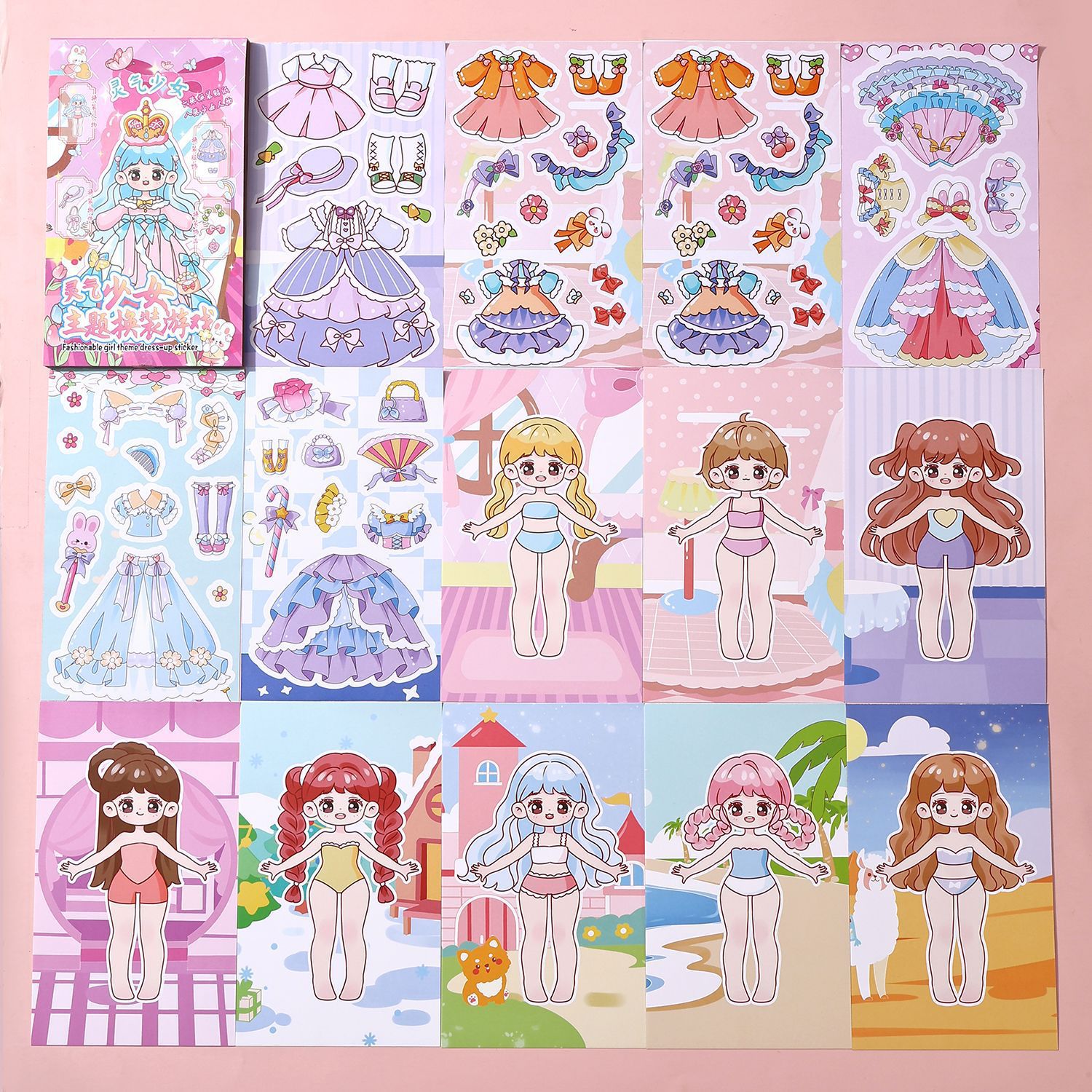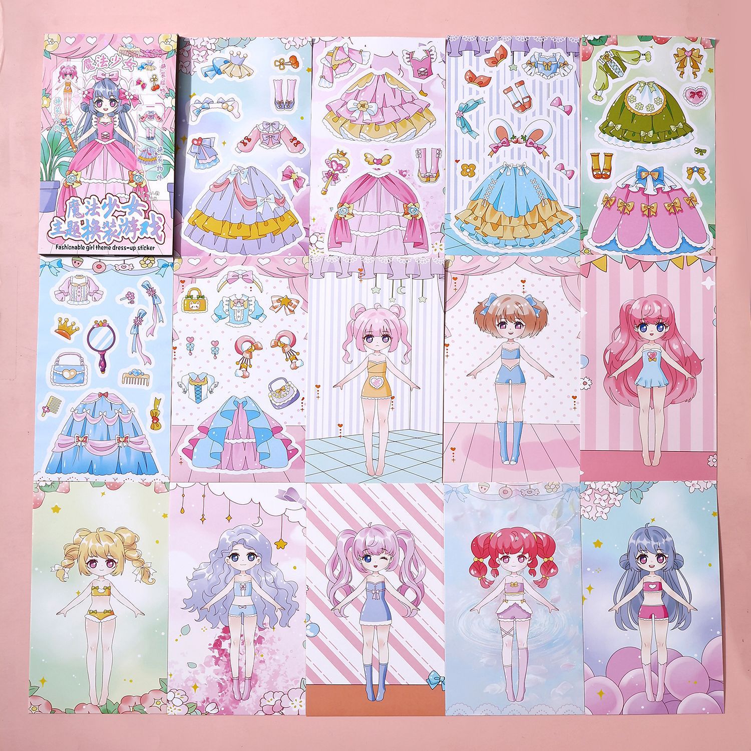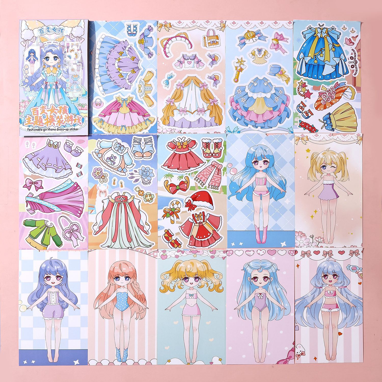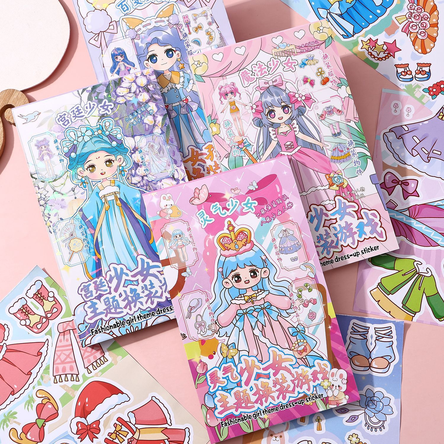 Yuanqi 만화 귀여운 소녀 변경 스티커 어린이 DIY 창조적 인 소재 높은 가치의 어린 소녀 선물