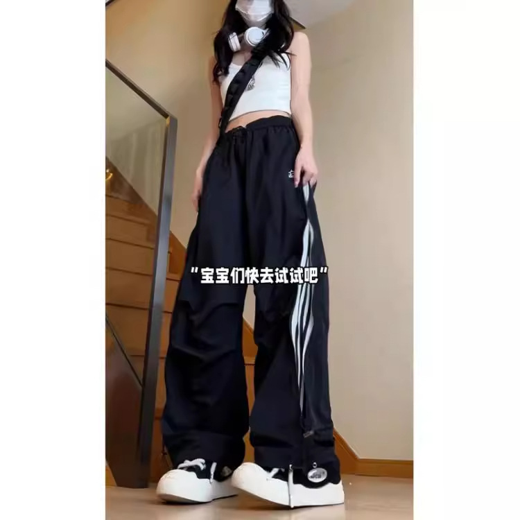 여름 스포츠 및 레저 작업복 바지 소년 소녀용 와이드 레그 루즈한 힙합 3바 속건성 낙하산 충전 바지 트렌디스토어 가기