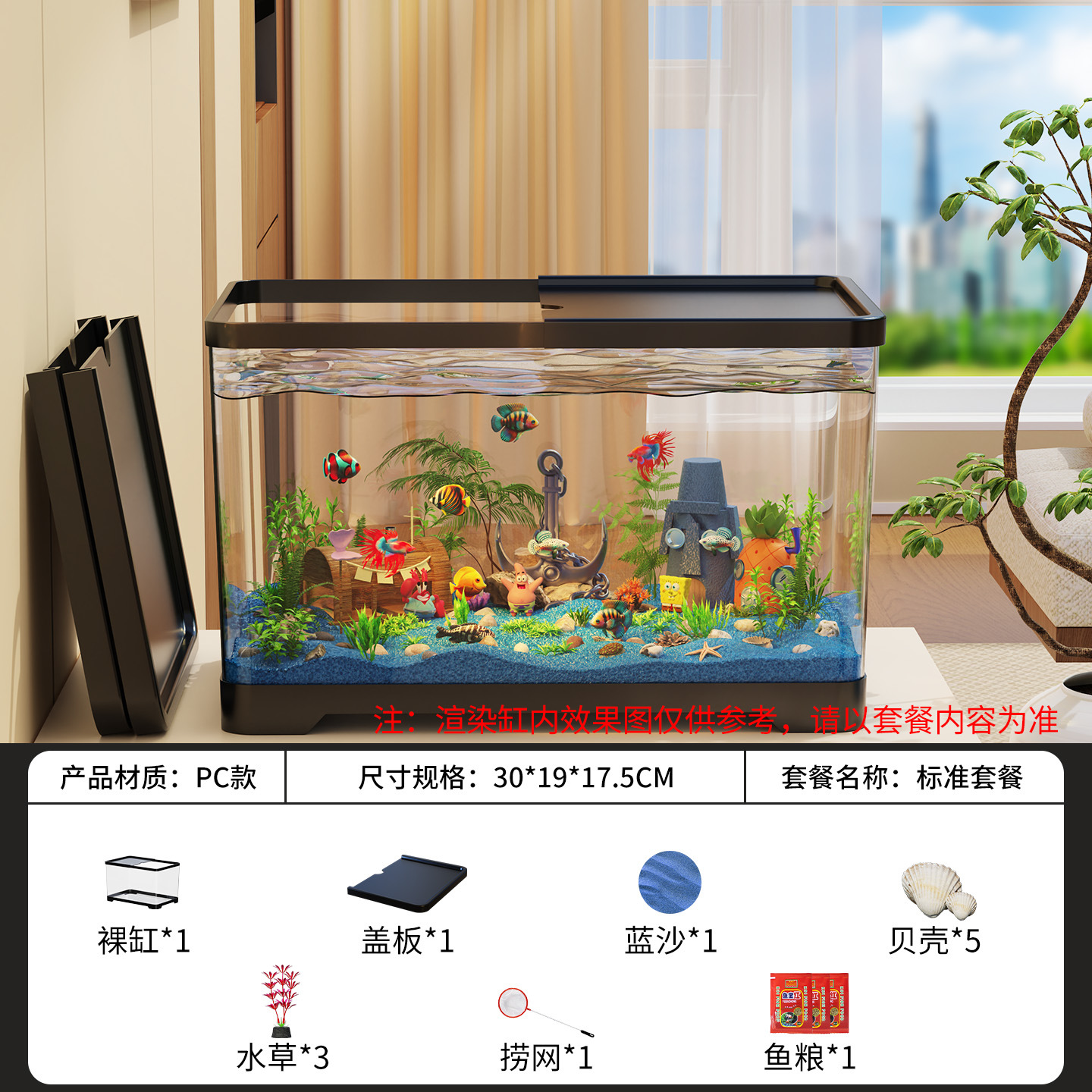 데스크탑 수조 소형 조경 2025 새로운 전체 세트 생태 투명 홈 거실 수조 바닥 필터 애완 동물 용품스토어 가기