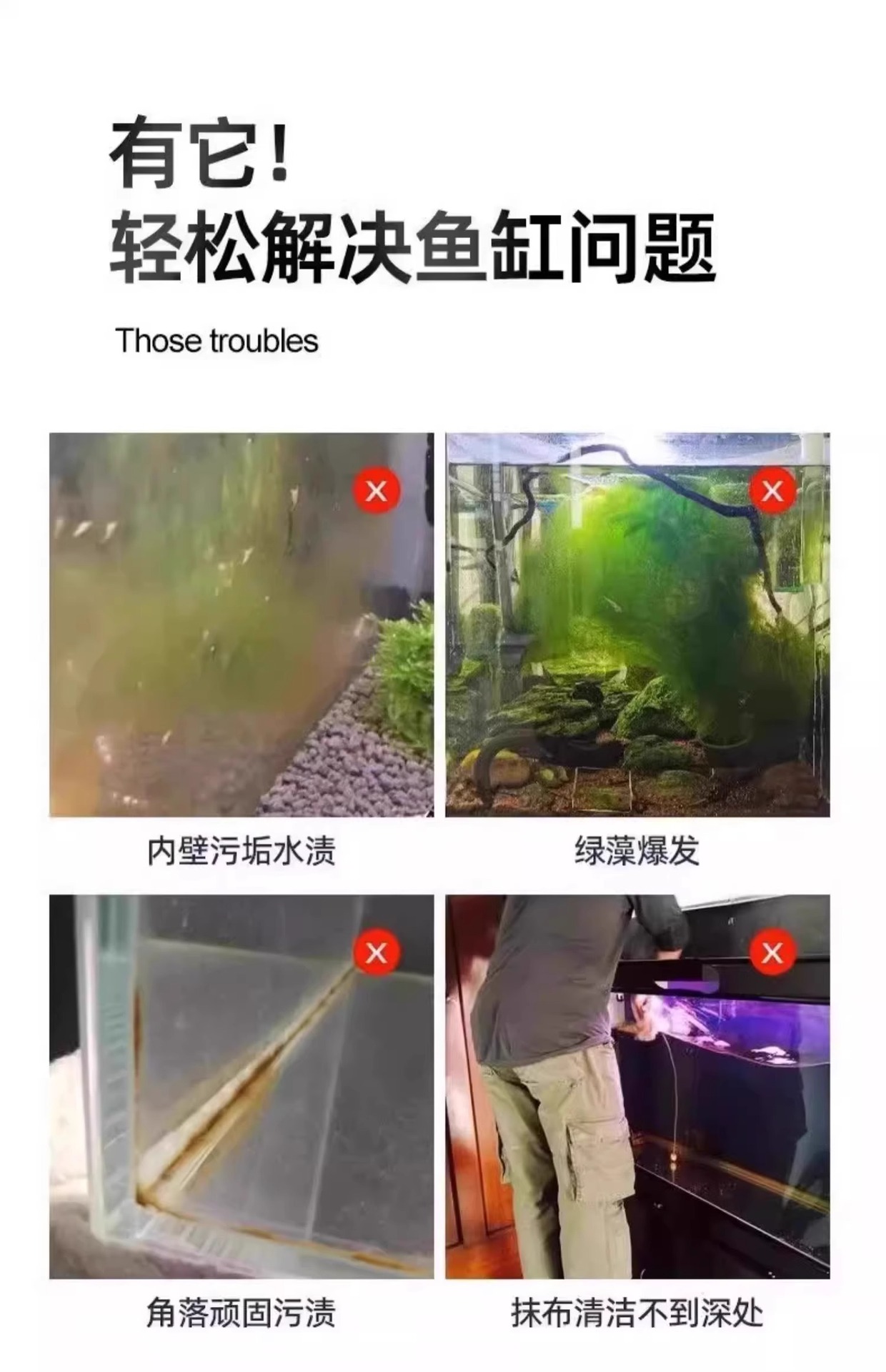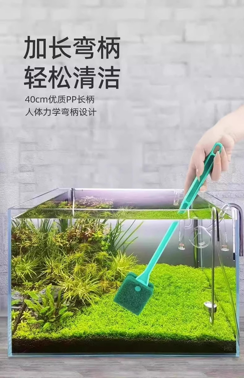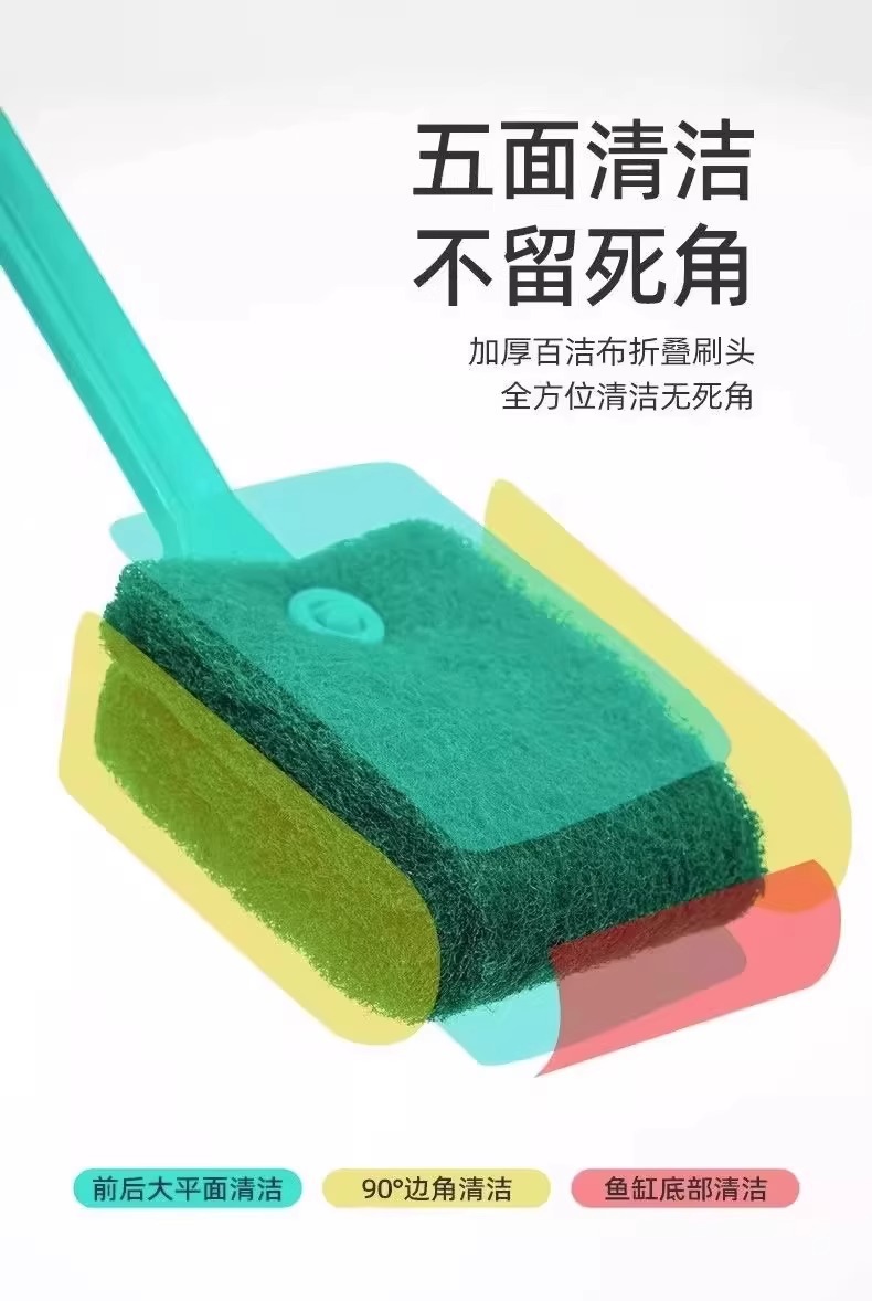 수조 청소용 브러시, 긴 손잡이, 사각지대 없음, 청소용품, 청소도구, 유리 내벽 청소용 특수 조류 제거 브러시