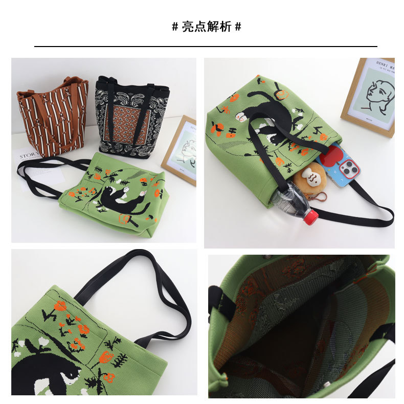 2025년 신제품 한국판 만화 귀여운 ~ 싱글 숄더 버킷백, 다용도 토트백, 여성용 대용량 니트 겨드랑이 가방스토어 가기