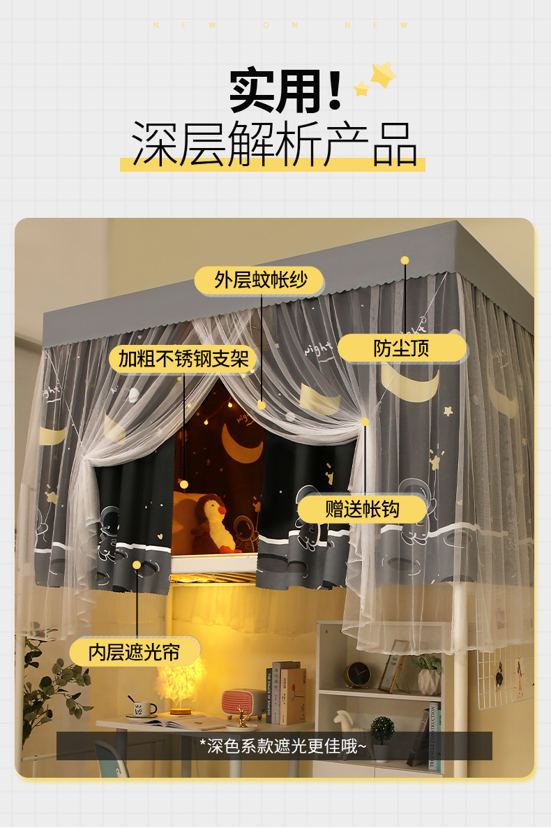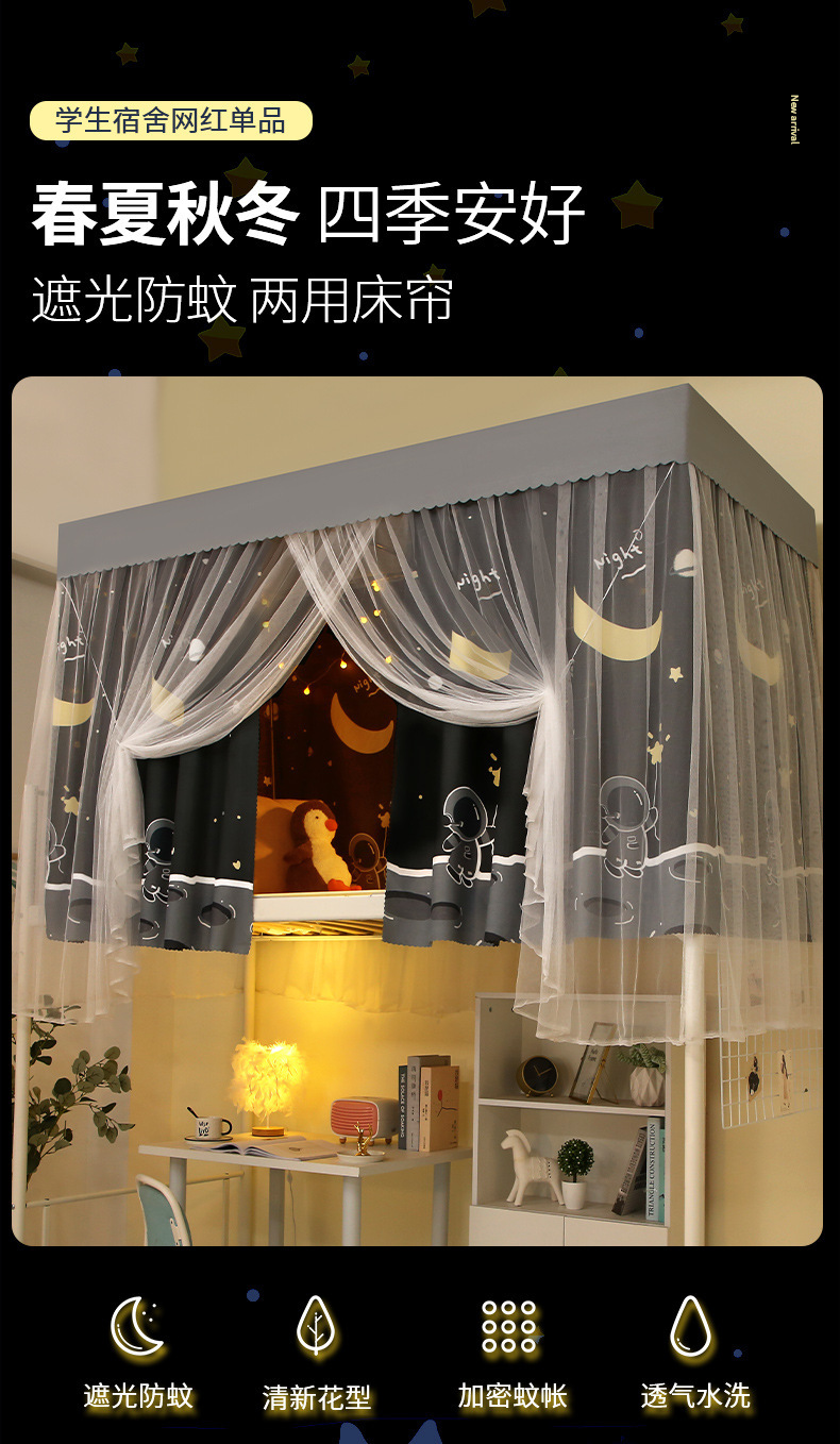 대학생 기숙사 차광 침대 커튼 모기장 일체형 싱글 이층 침대 범용 기숙사 일체형 스탠드 포함스토어 가기