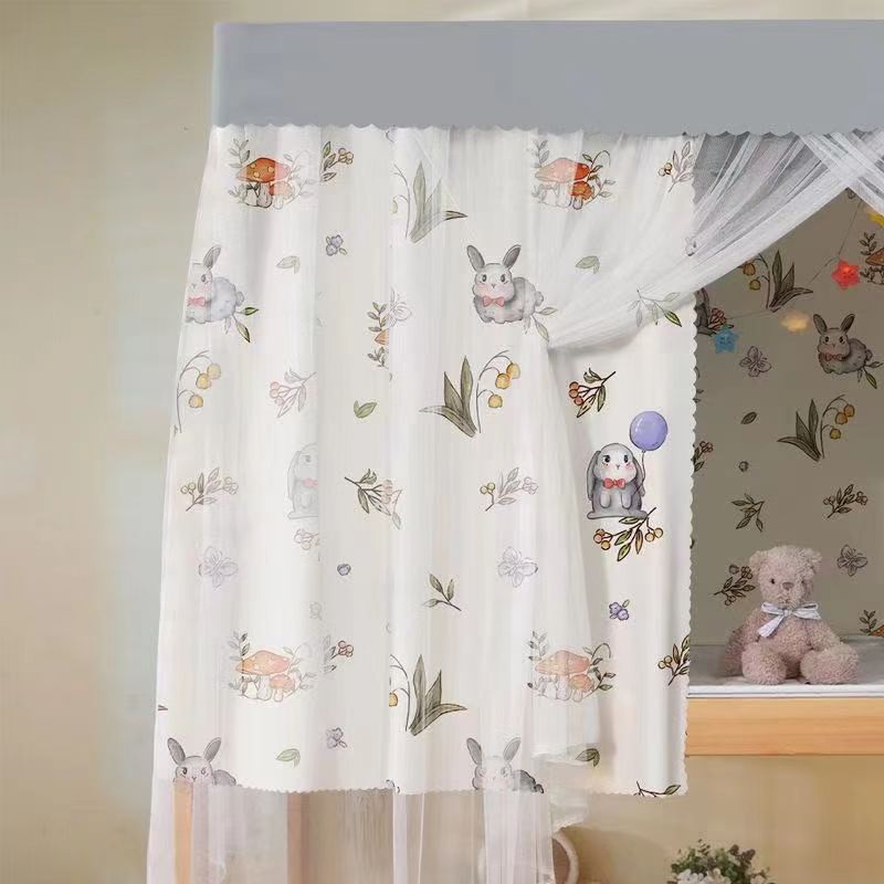 • 야생초 회색 토끼 [침대커튼2개+상판+모기장+브래킷]