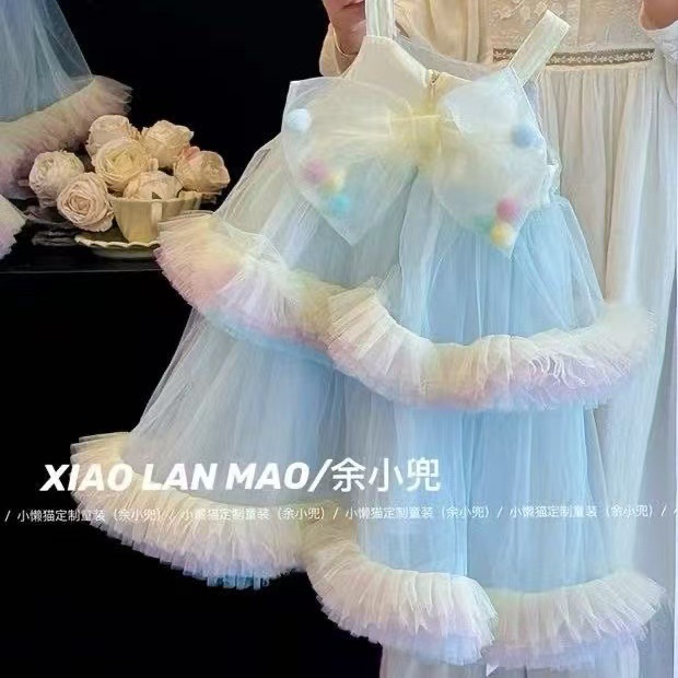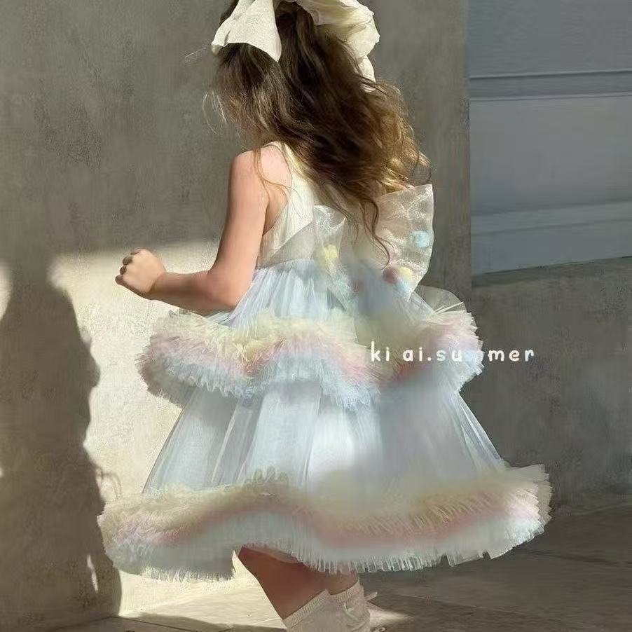 25년 여름 여아용 레인보우 슬립 드레스, 중소 어린이 공주 드레스, 민소매 드레스, 퍼프 메쉬 드레스스토어 가기