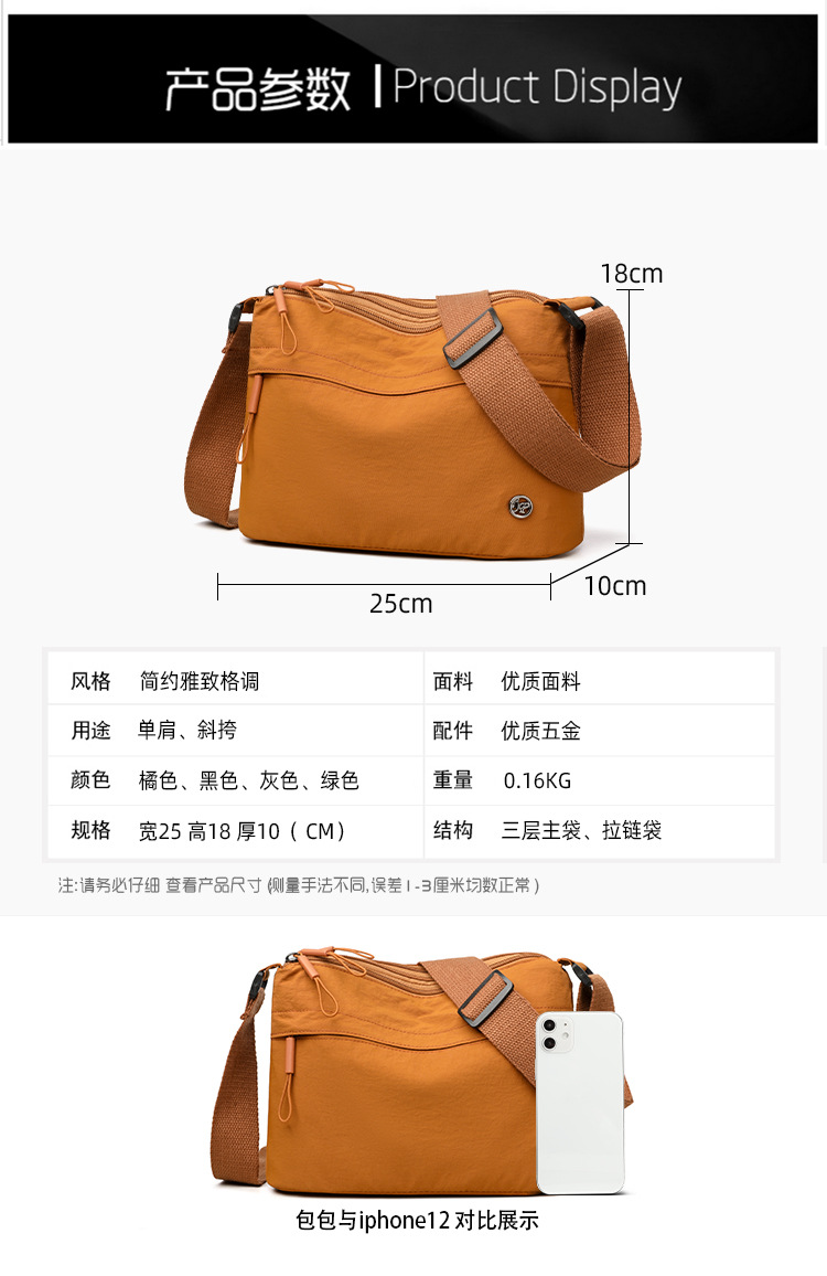 2025 여름 새로운 레몬 천 가방 캐주얼 경량 크로스 바디 가방 여성 스포츠 패션 작업 통근 어깨 가방