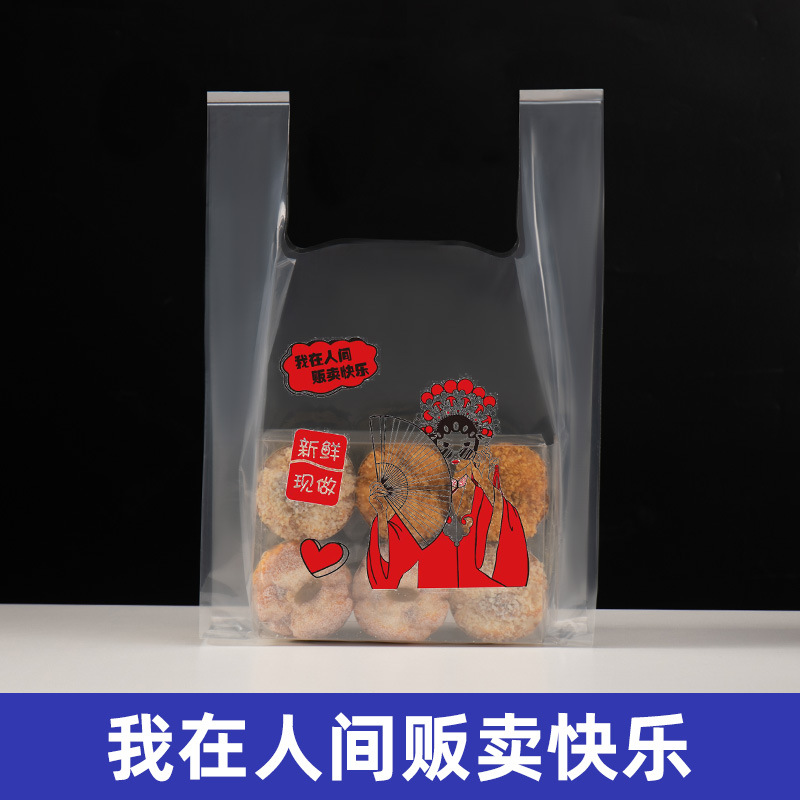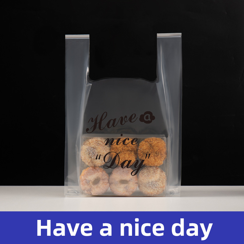 투명도 높고 미려한 디자인의 베이커리/제과점용 고압 소프트 필름 플라스틱 휴대용 포장백, 테이크아웃 샐러드/음식 포장백스토어 가기