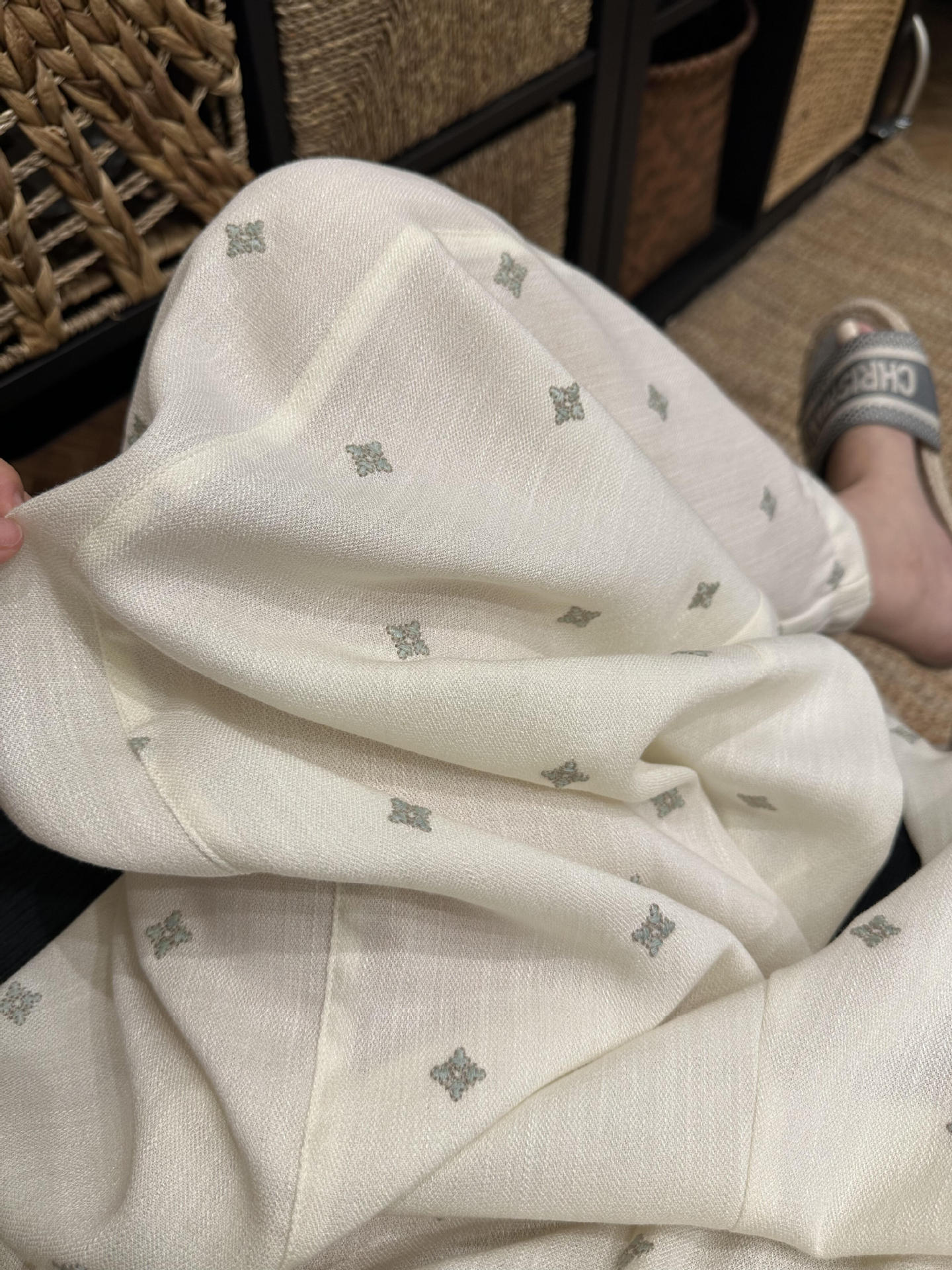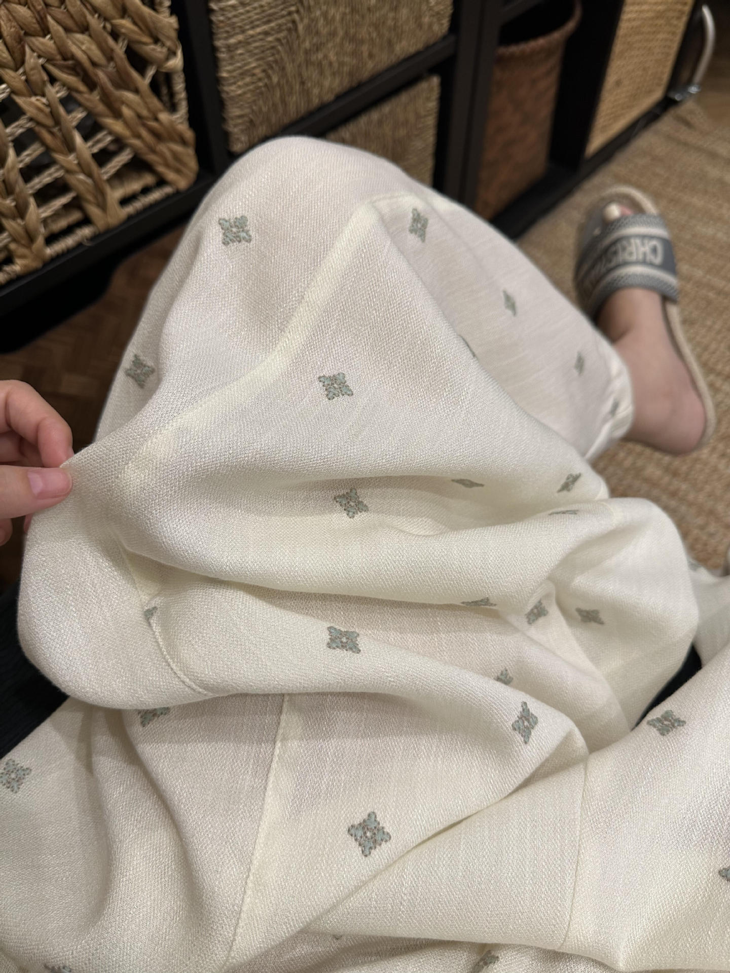 冰丝感!刺绣亚麻阔腿裤女春夏新款休闲宽松薄款裤子
