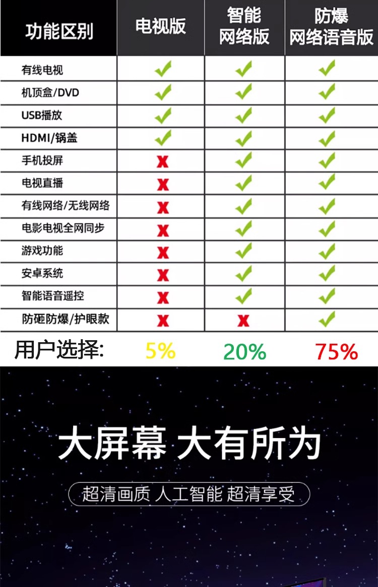 4K 에이스 70인치 65inch TV 스마트 네트워크 32인치 50인치 55인치 75인치 80 초선명 LCD 대형 스크린스토어 가기