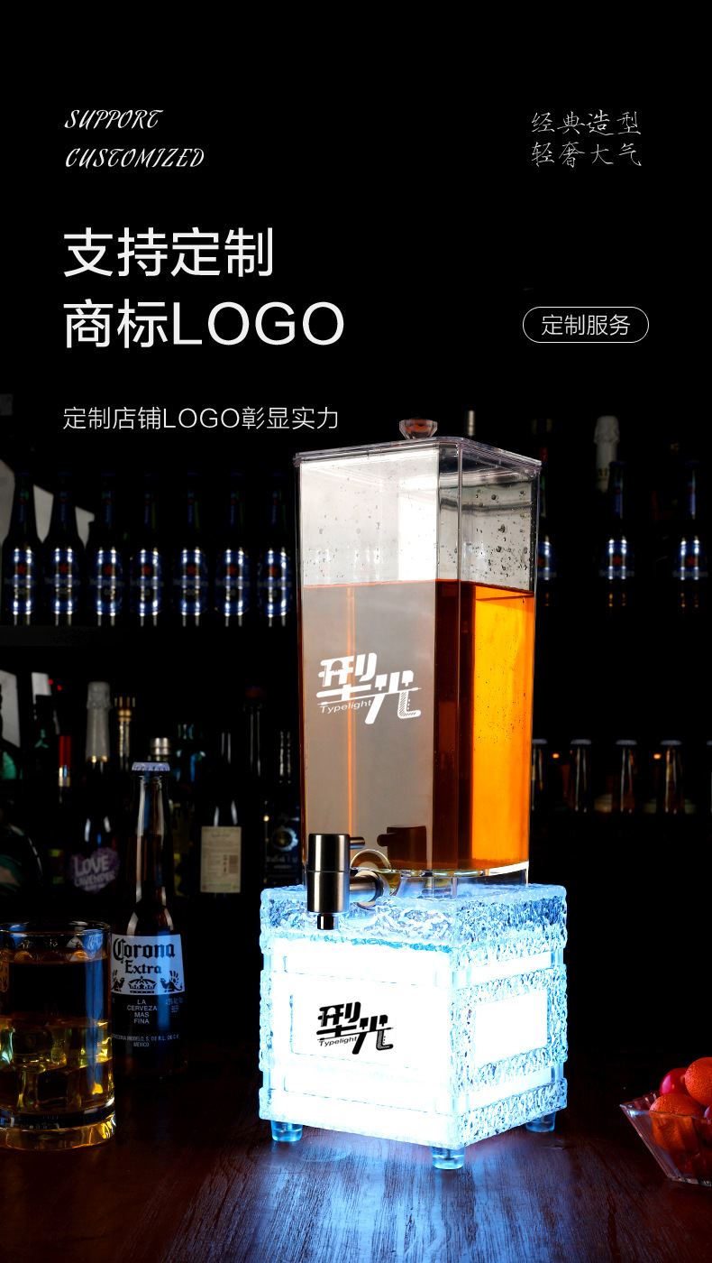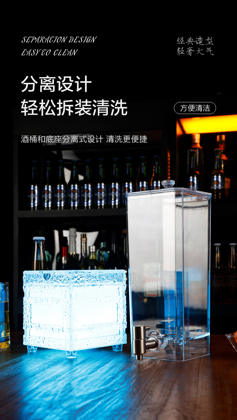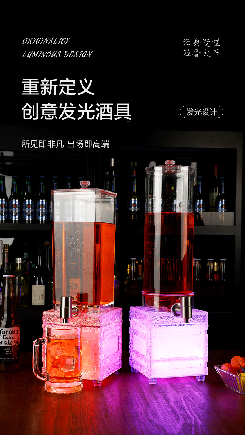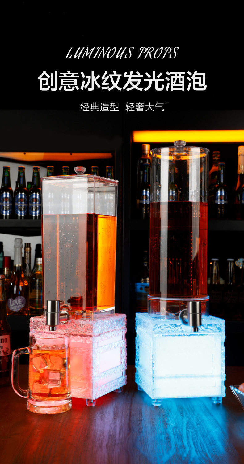 LED 조명 맥주통 3리터, 얼음결무늬 맥주통, 바/KTV 주스통, 와인랙, 스테인리스 수도꼭지