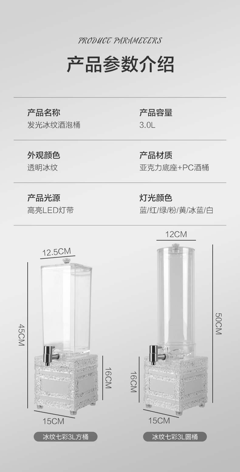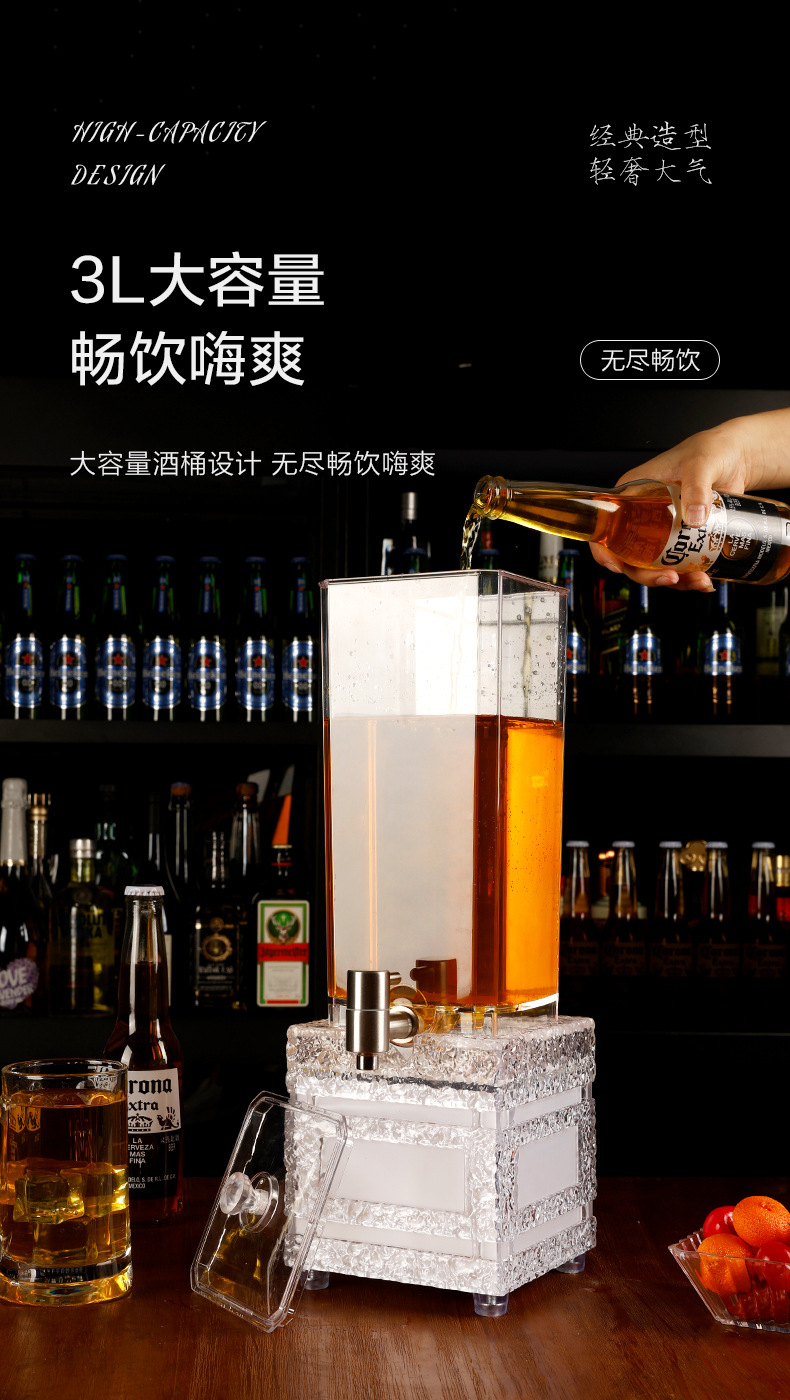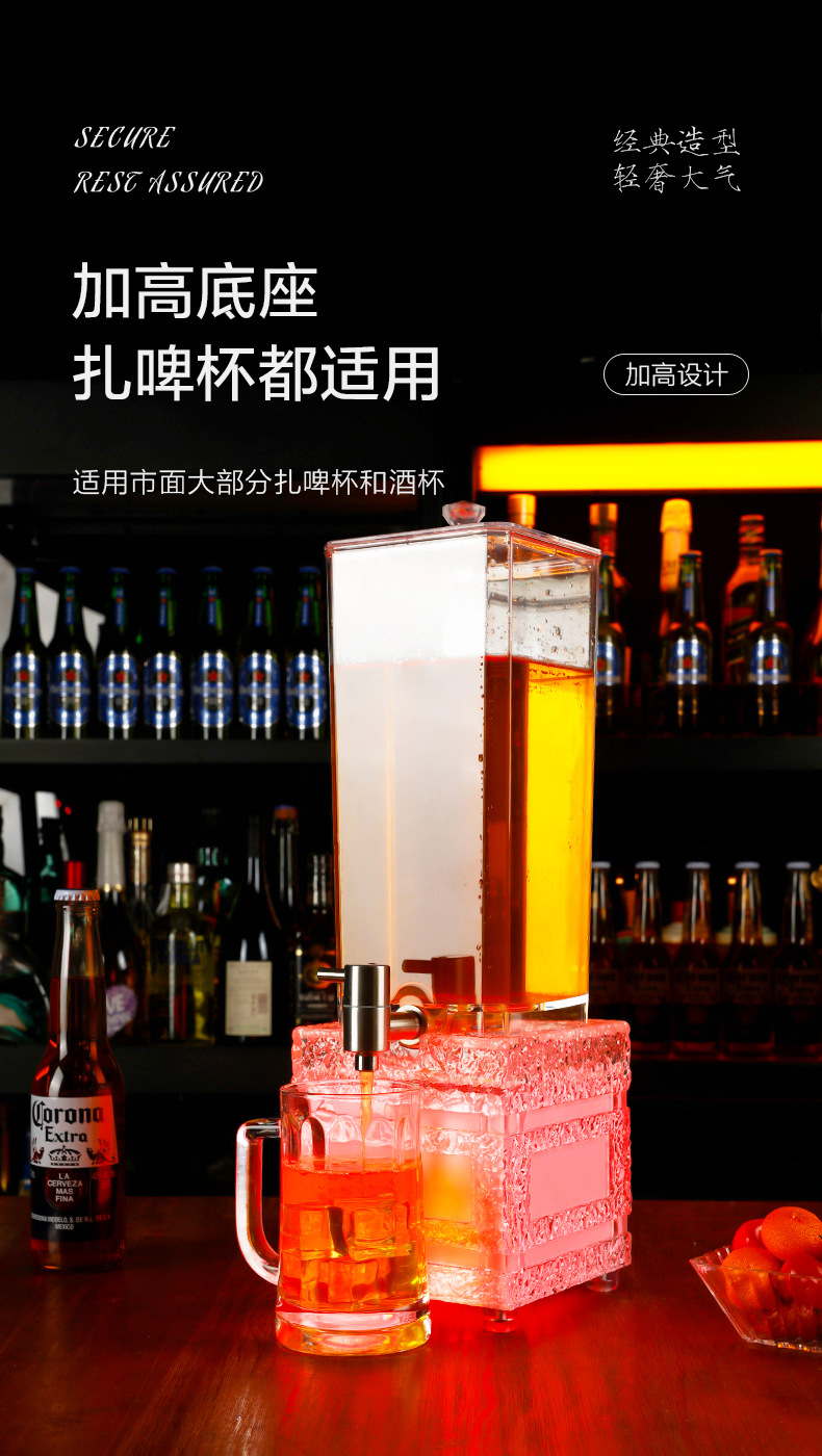 LED 조명 맥주통 3리터, 얼음결무늬 맥주통, 바/KTV 주스통, 와인랙, 스테인리스 수도꼭지