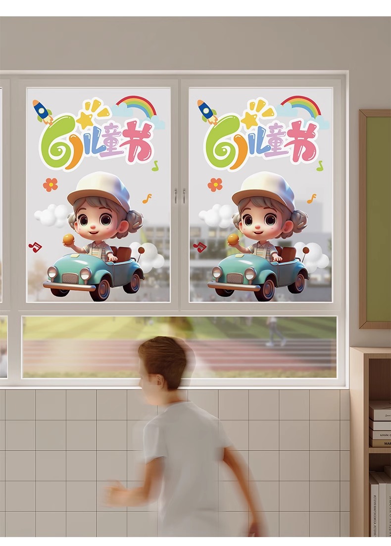 어린이 날 유리 스티커 유치원 교실 분위기 장식 정전기 스티커 종이 창 그릴 61 휴일 스티커