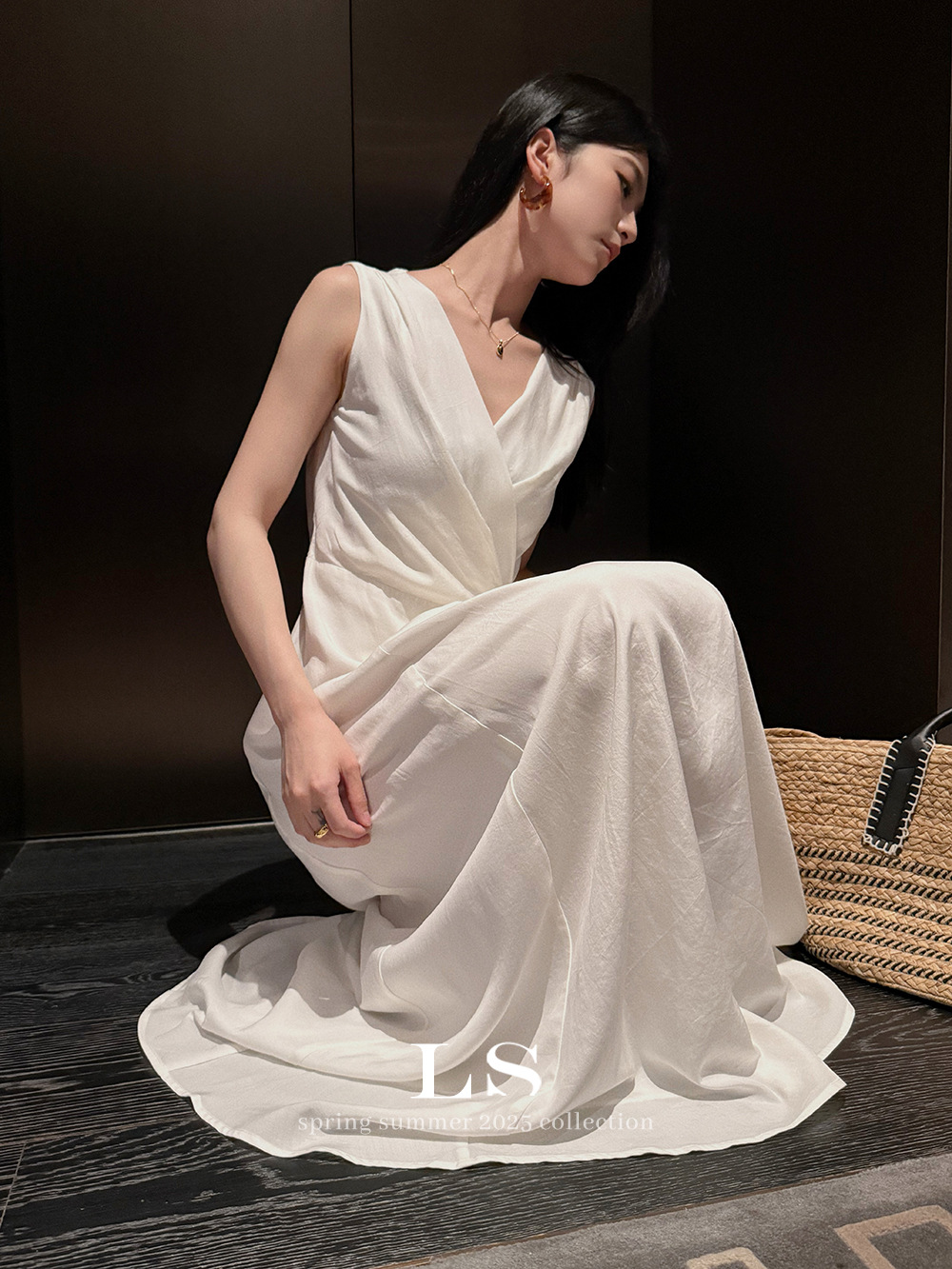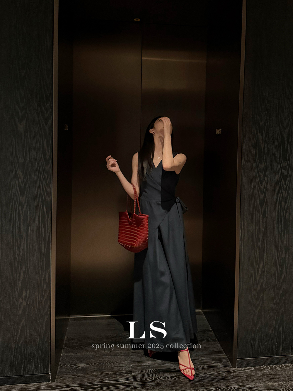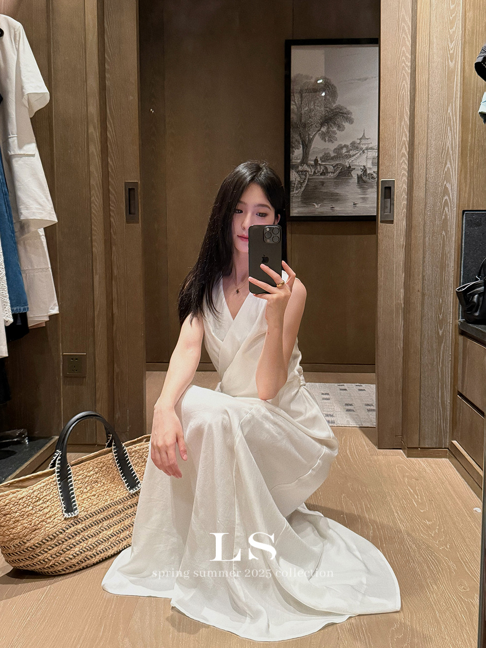 [LS 새로운 브랜드] 블랙 라벨 최소 빅 브랜드 여름 새 패션 최소 V-넥 원피스 30157 #스토어 가기