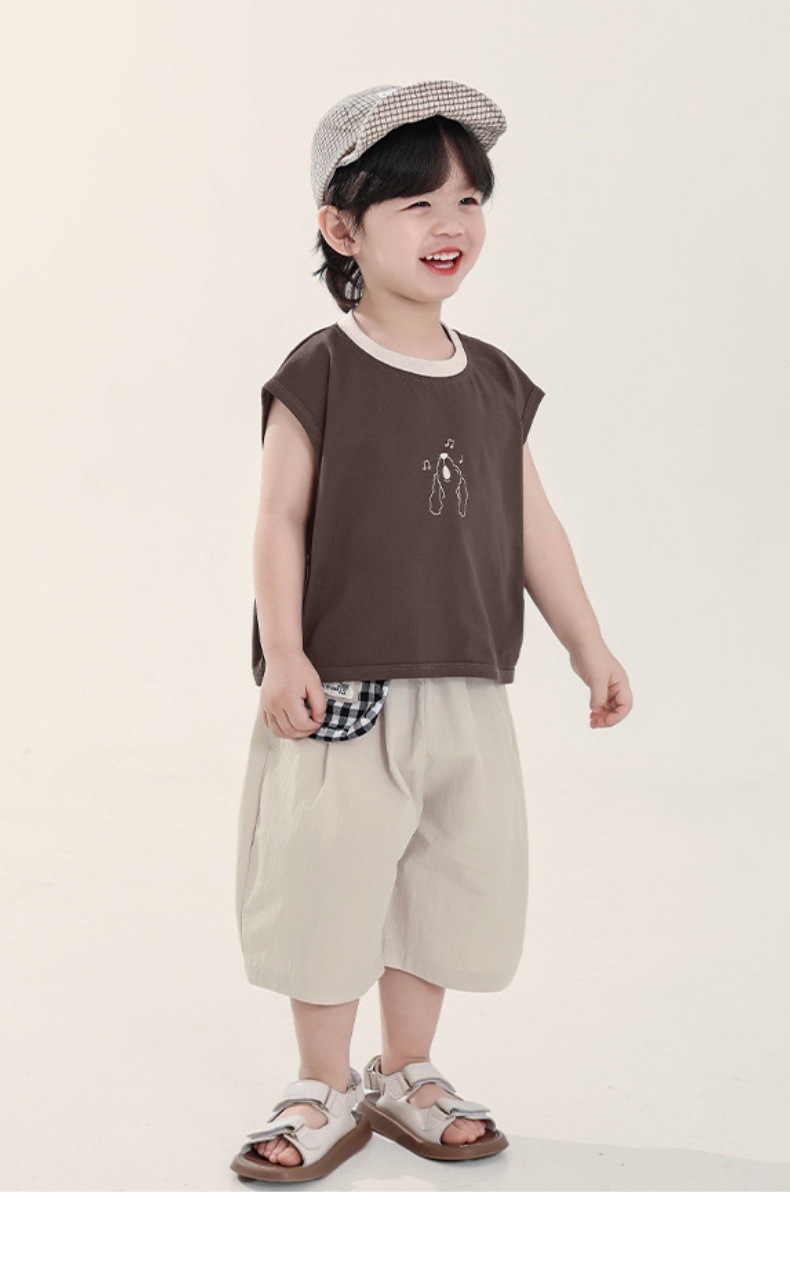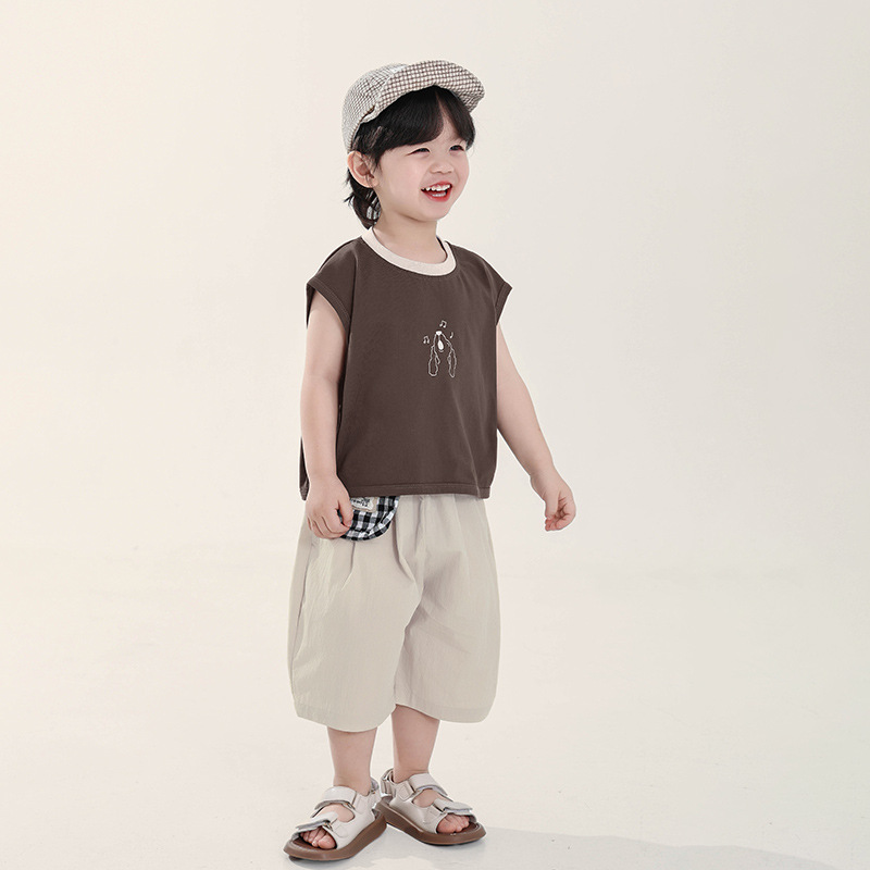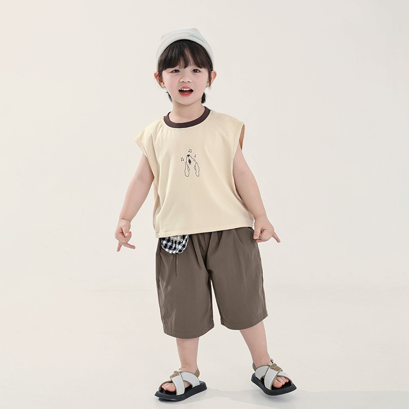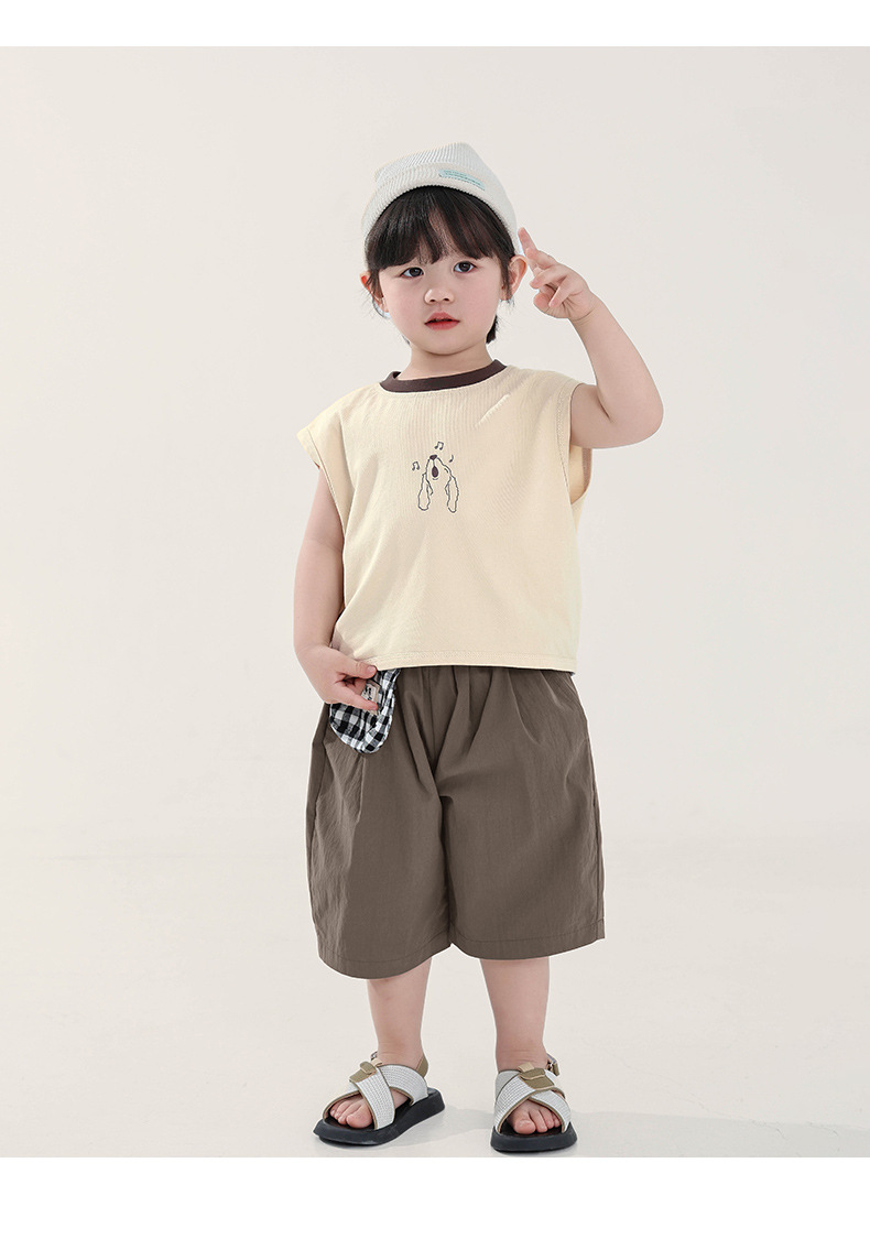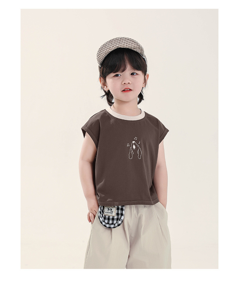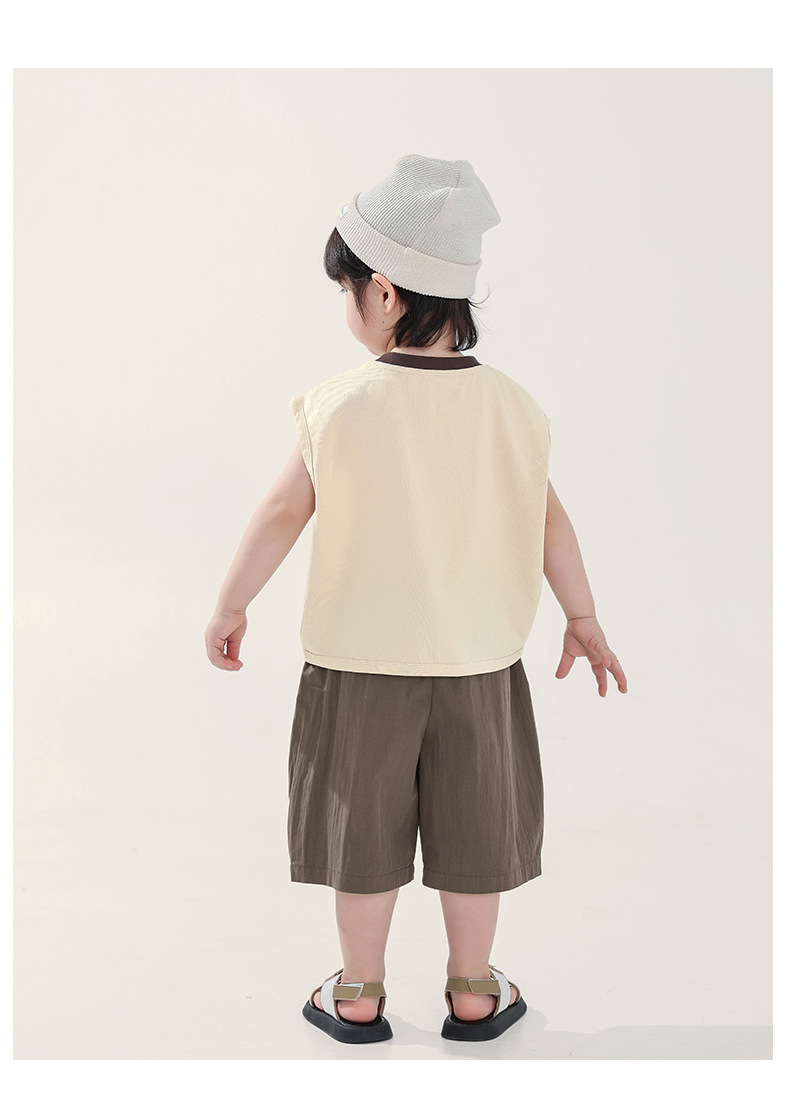 Changguo 아동복 소년 조끼 겉옷 어린이 여름 새로운 민소매 티셔츠 대조 색상 순수 코튼 탑스토어 가기