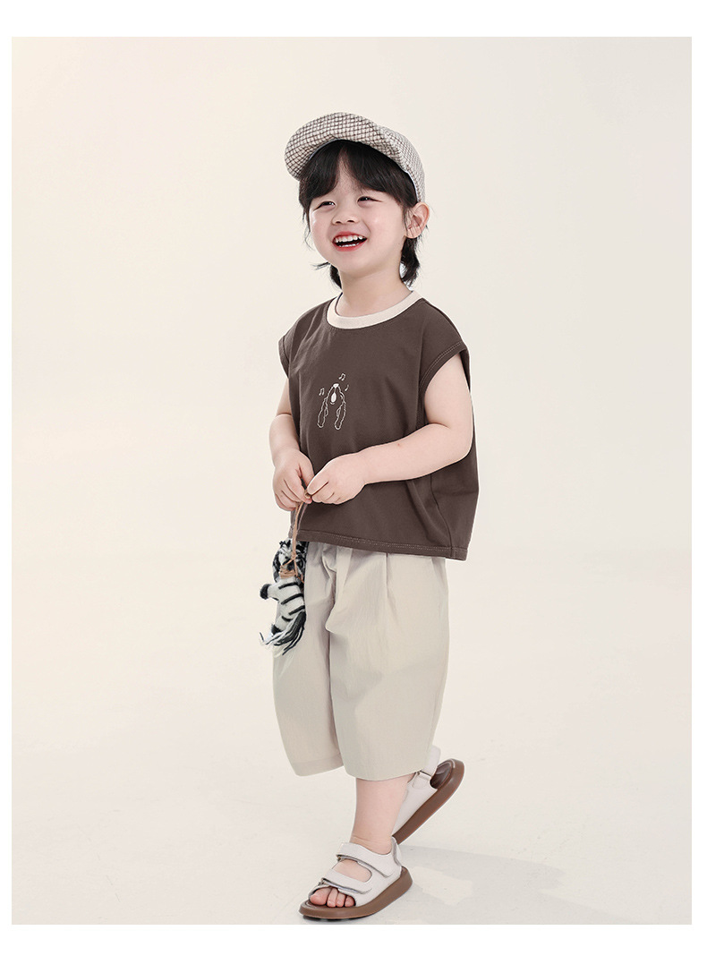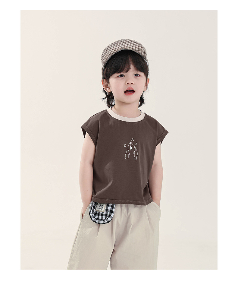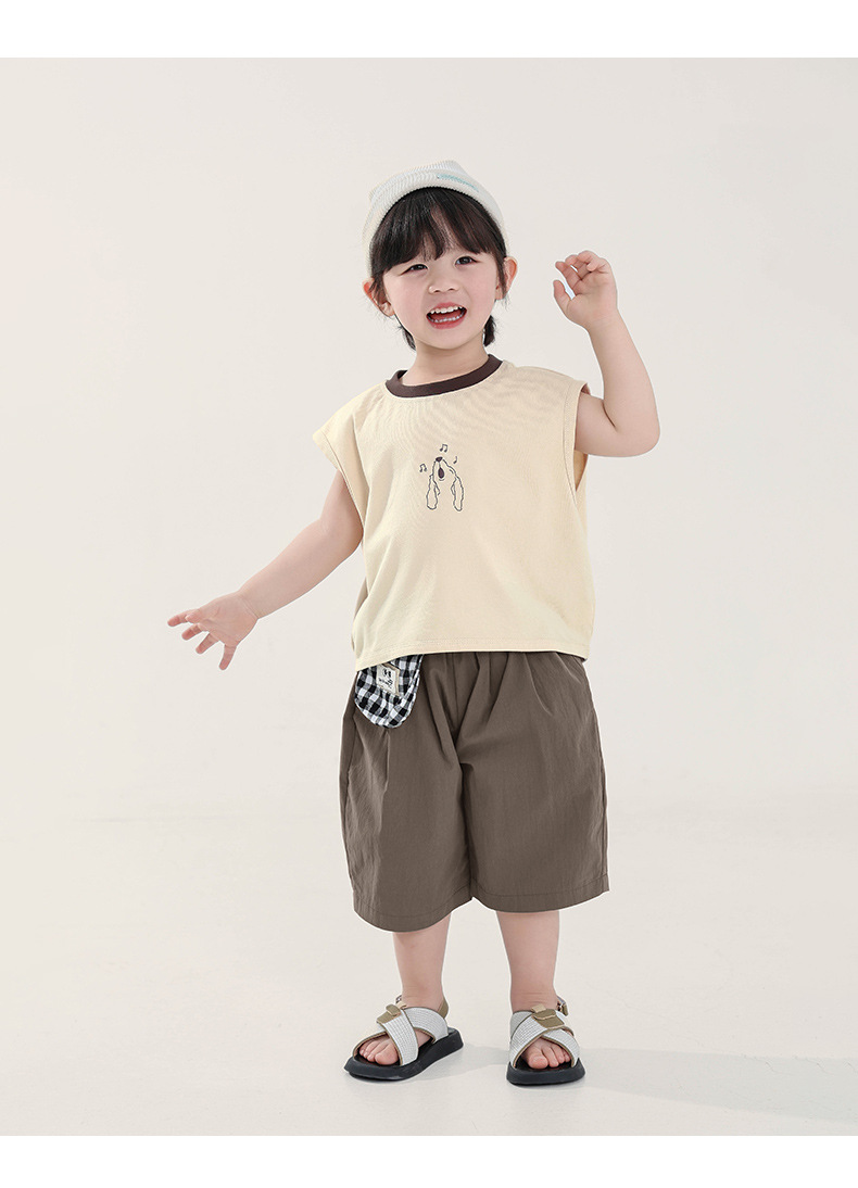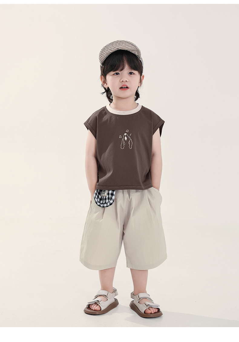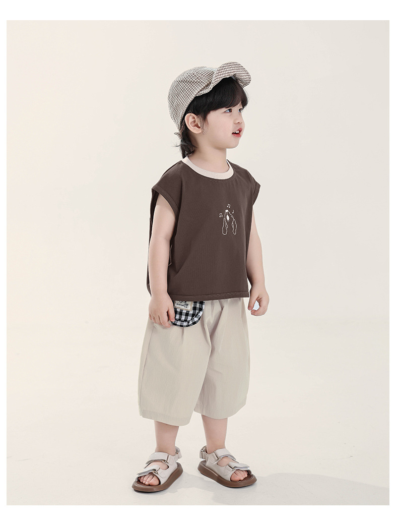 Changguo 아동복 소년 조끼 겉옷 어린이 여름 새로운 민소매 티셔츠 대조 색상 순수 코튼 탑스토어 가기