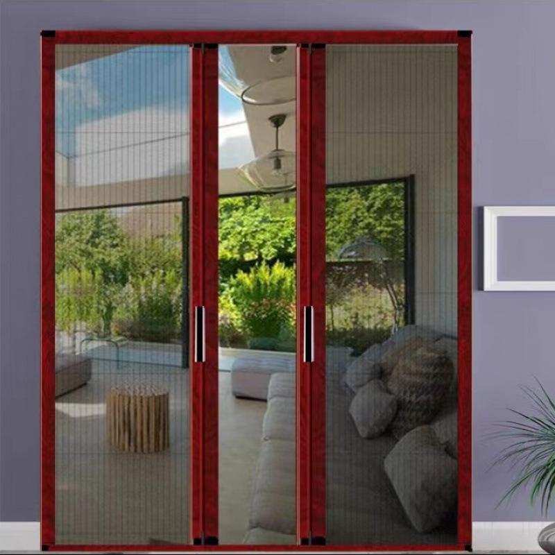 여름 통풍, 모기 방지, 보이지 않는 접이식 방충망, 펀치 없는 설치, 샌드 도어 오르간 스타일 알루미늄 합금 슬라이딩