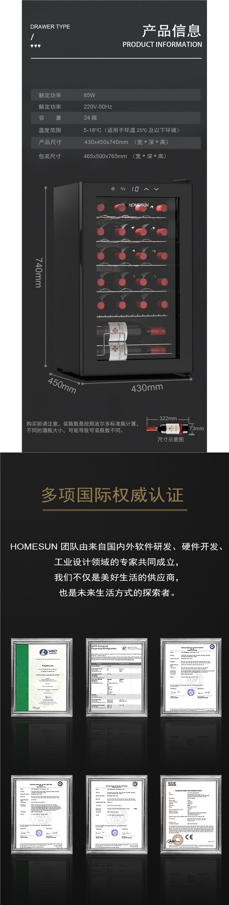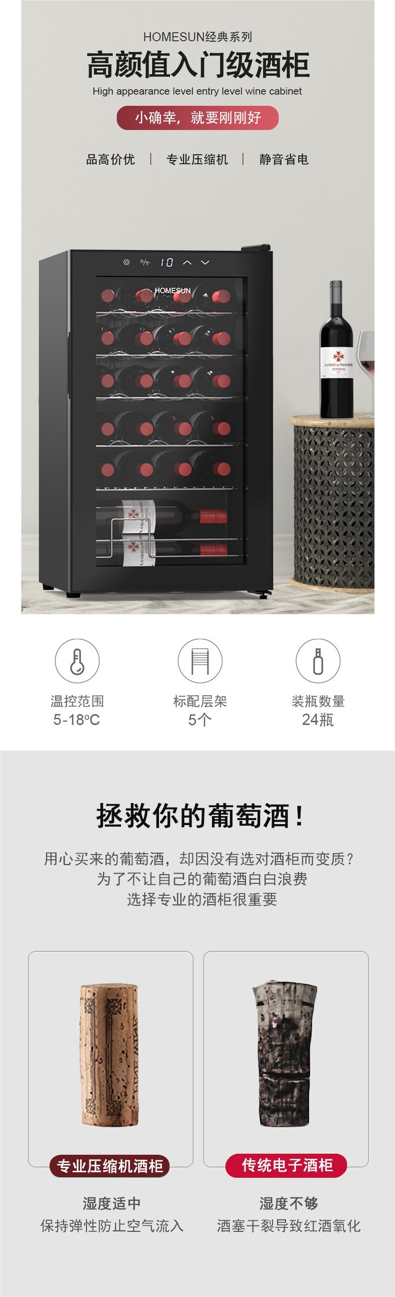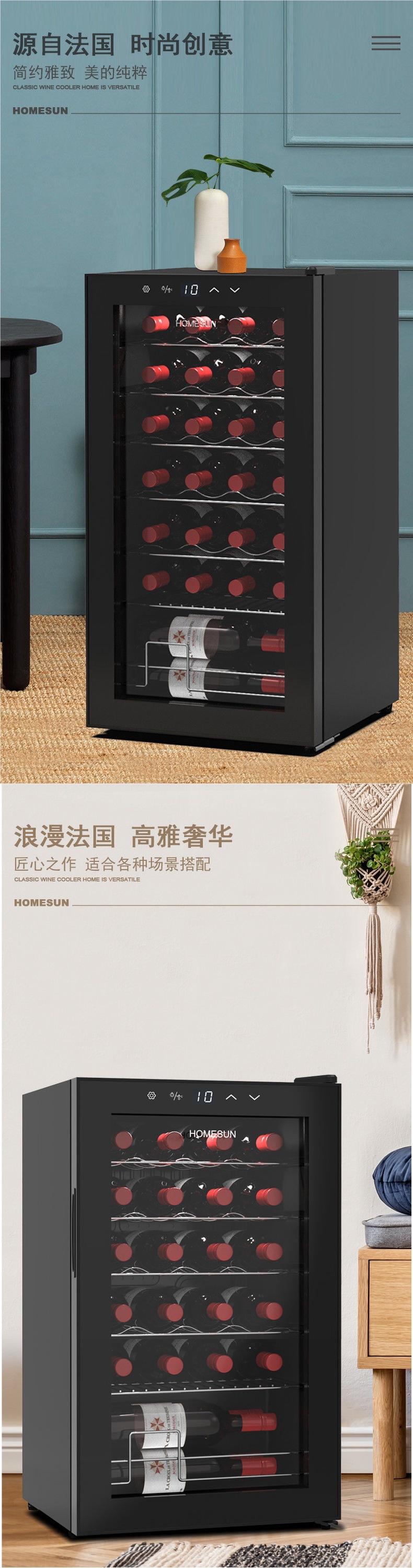 프랑스 Homesun 레드 와인 캐비닛 항온 와인 캐비닛 홈 아이스 바 소형 압축기 냉장 차 시가 캐비닛