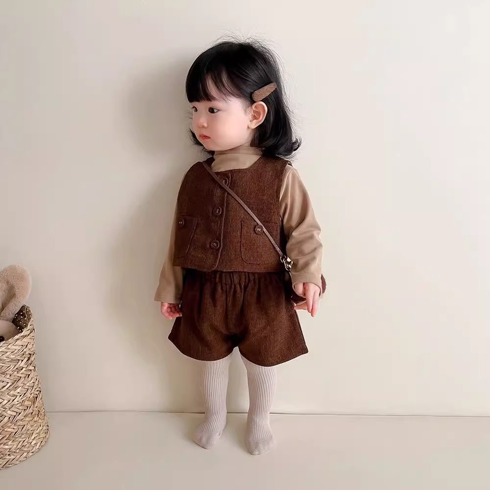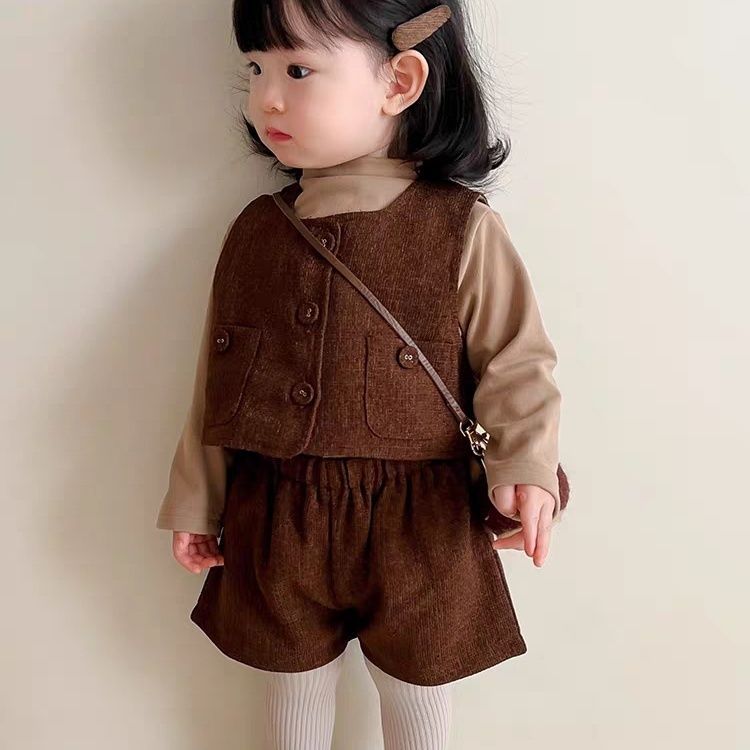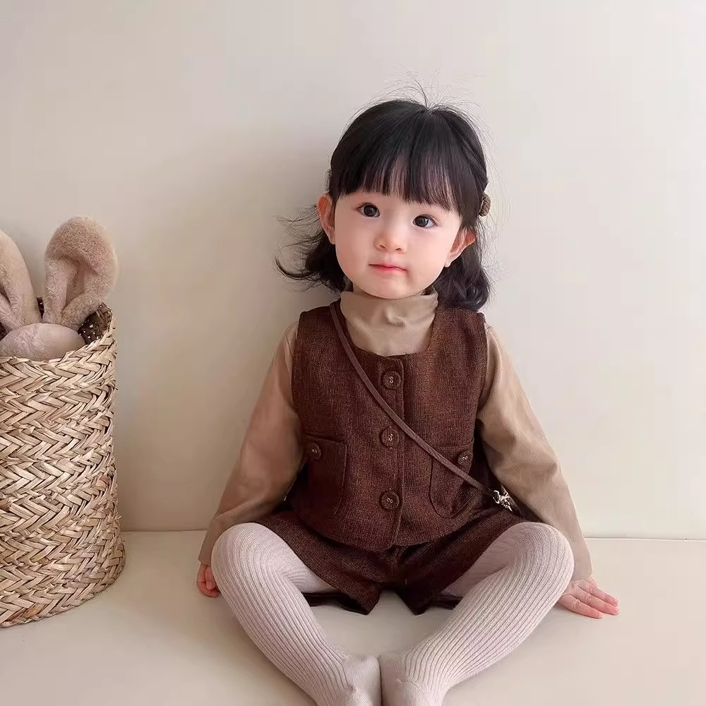 여아 정장 2025 봄 신작 봄 의류 아동 한국식 정장 조끼 캐주얼 바지 3 피스 세트 트렌디 베이비