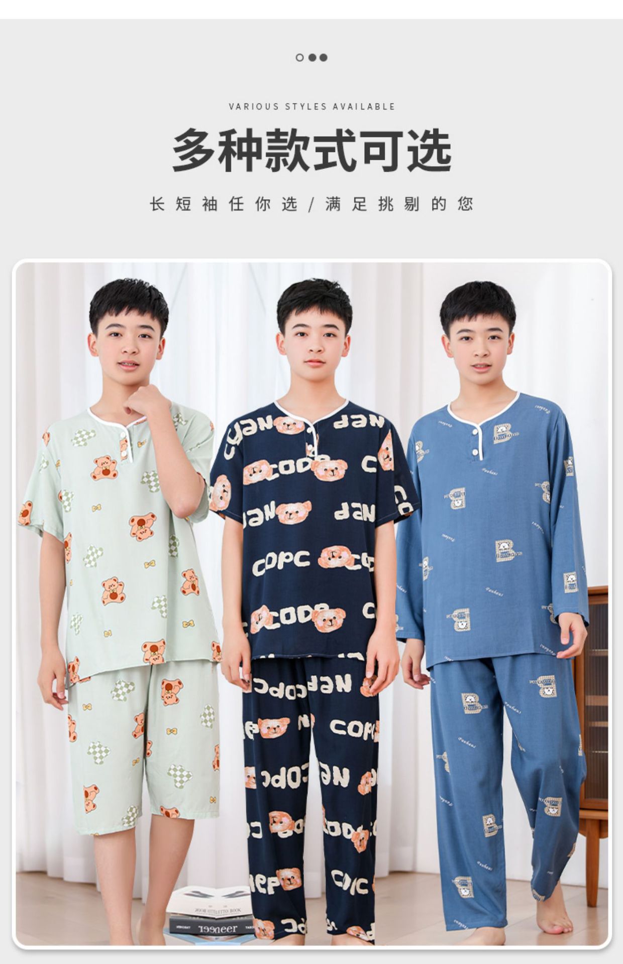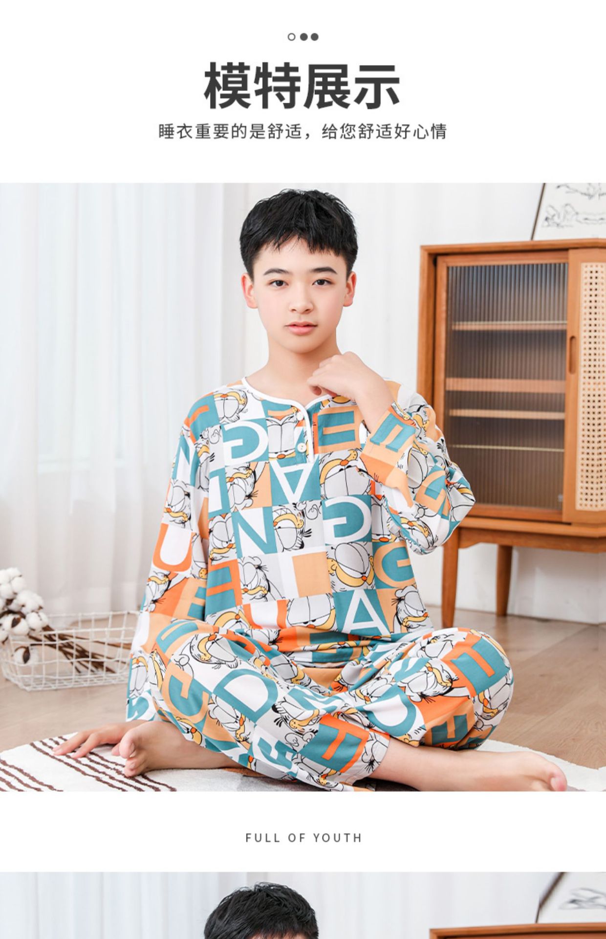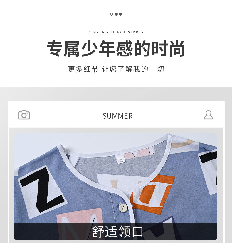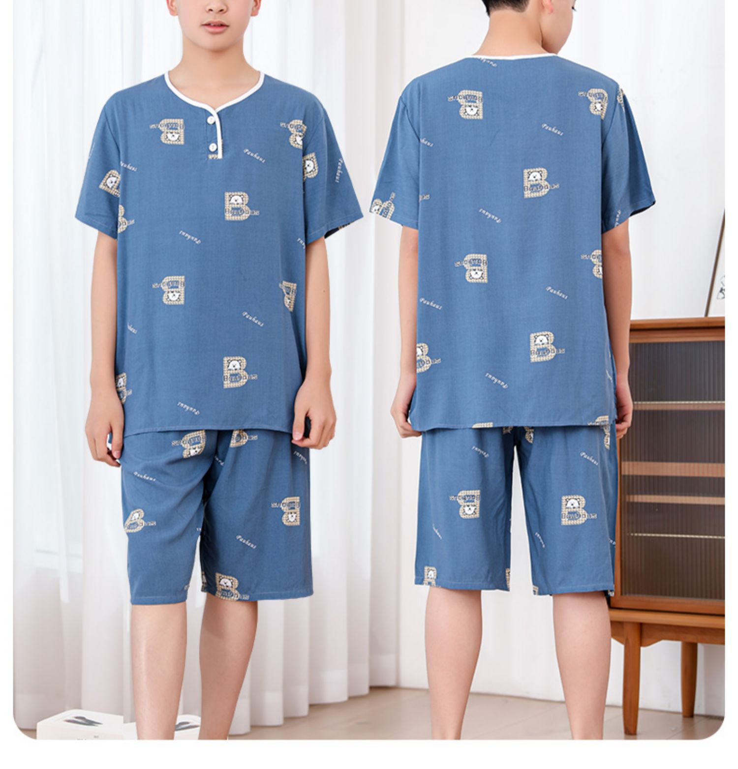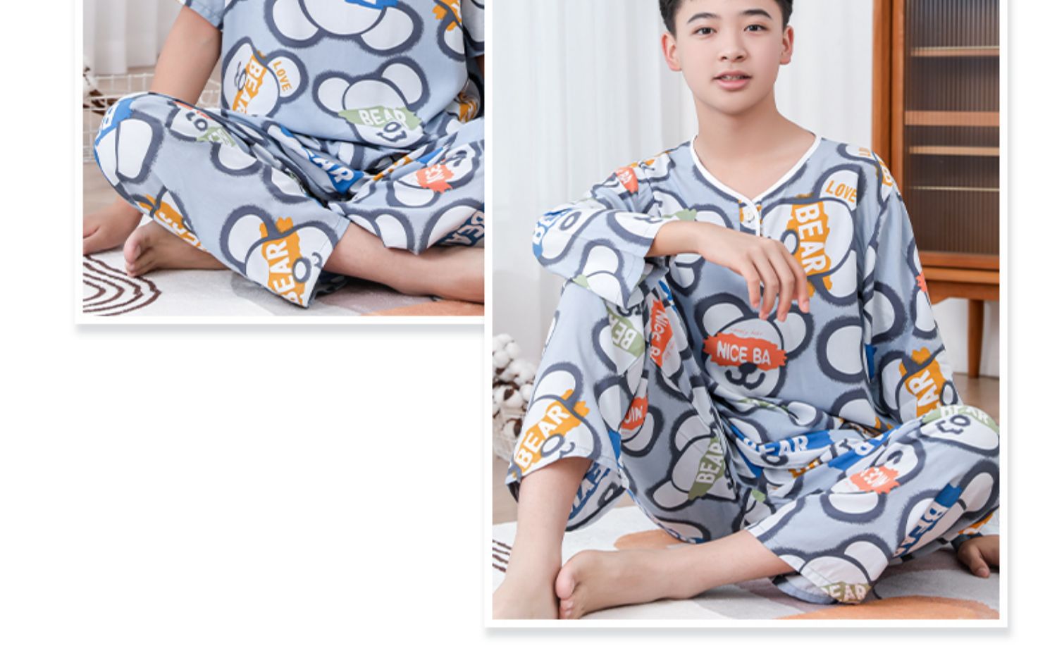 청소년 면 실크 잠옷 소년 여름 긴팔 중학생 가정복 학생 큰 어린이 인공 면 양복스토어 가기