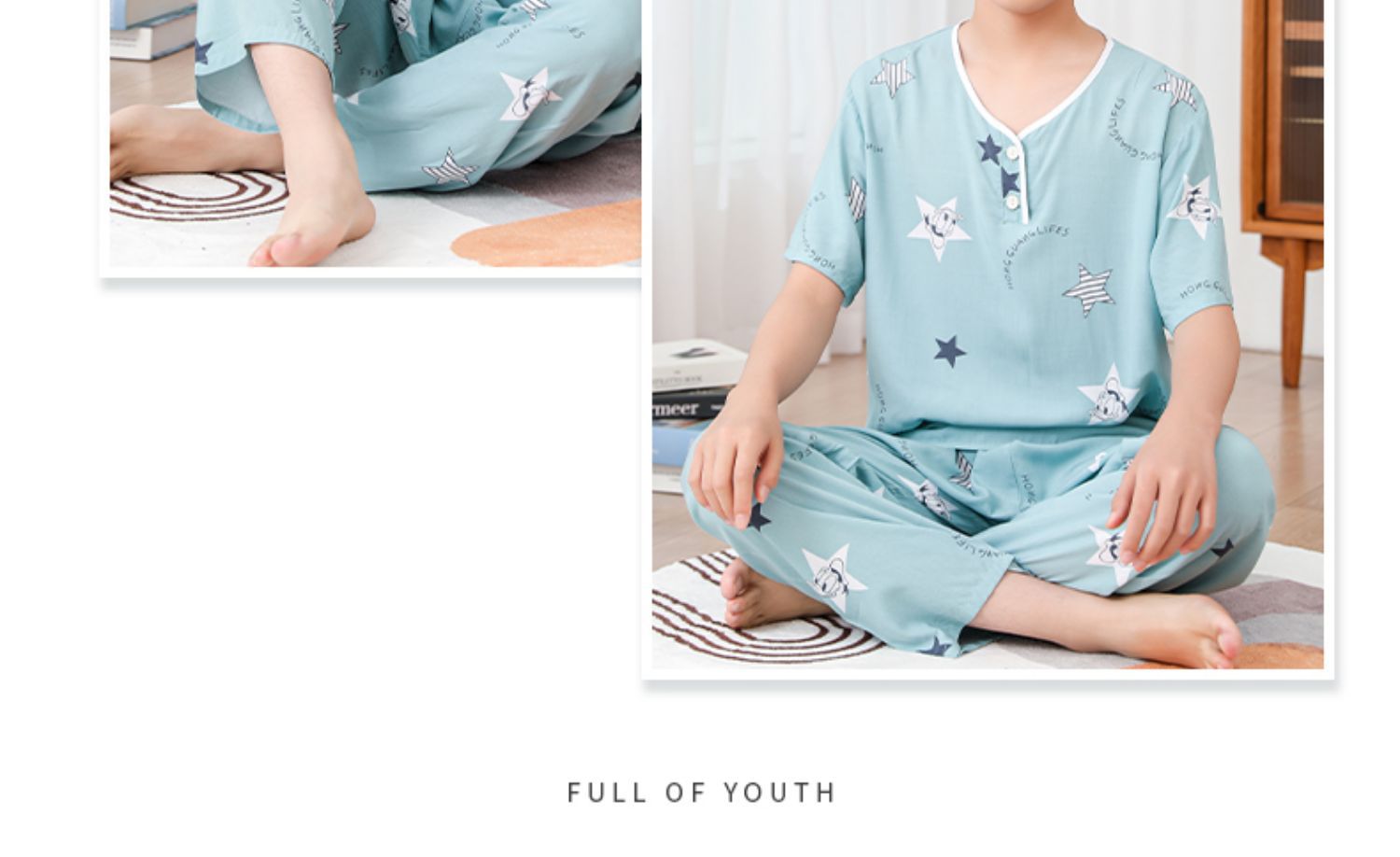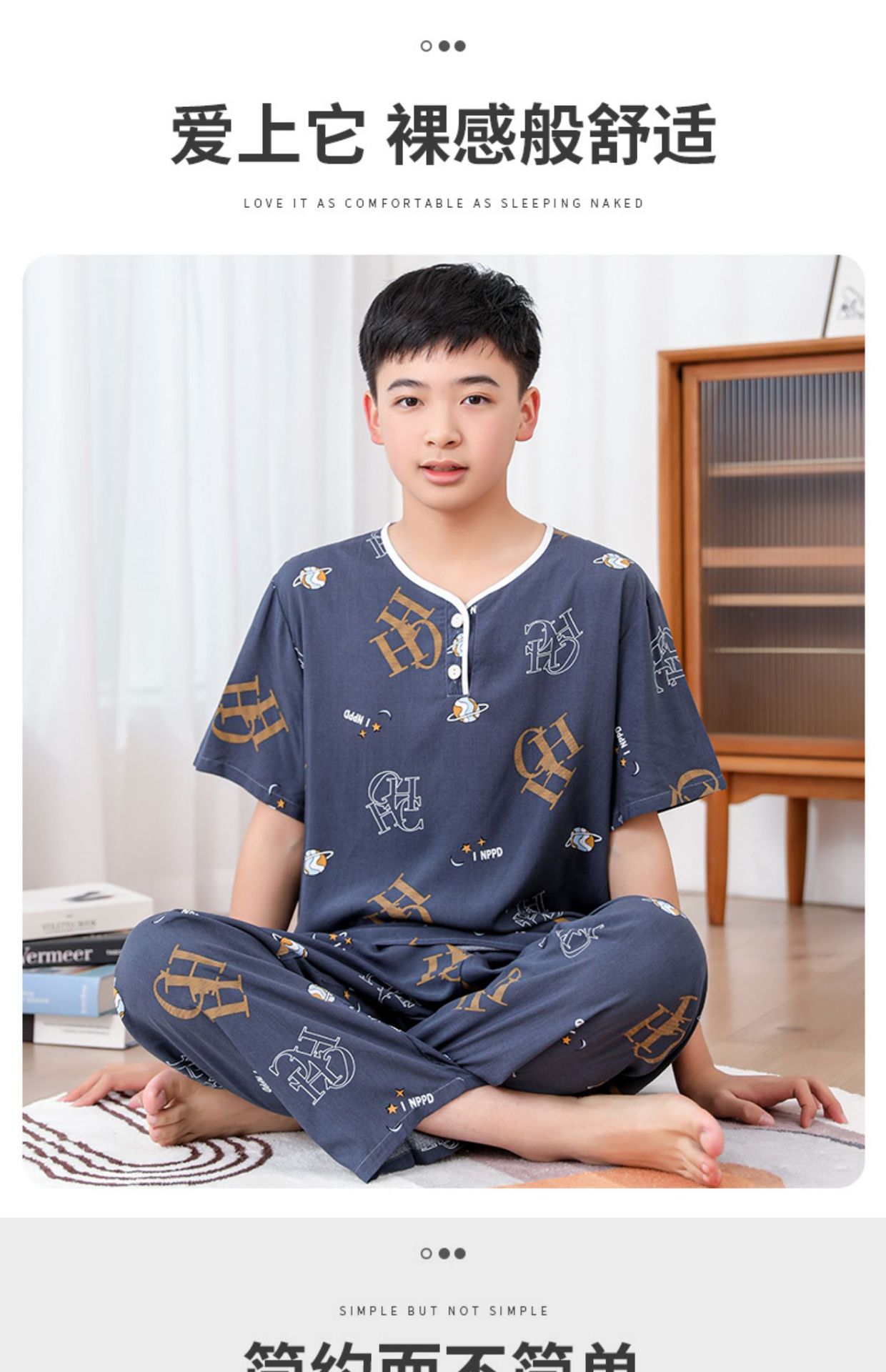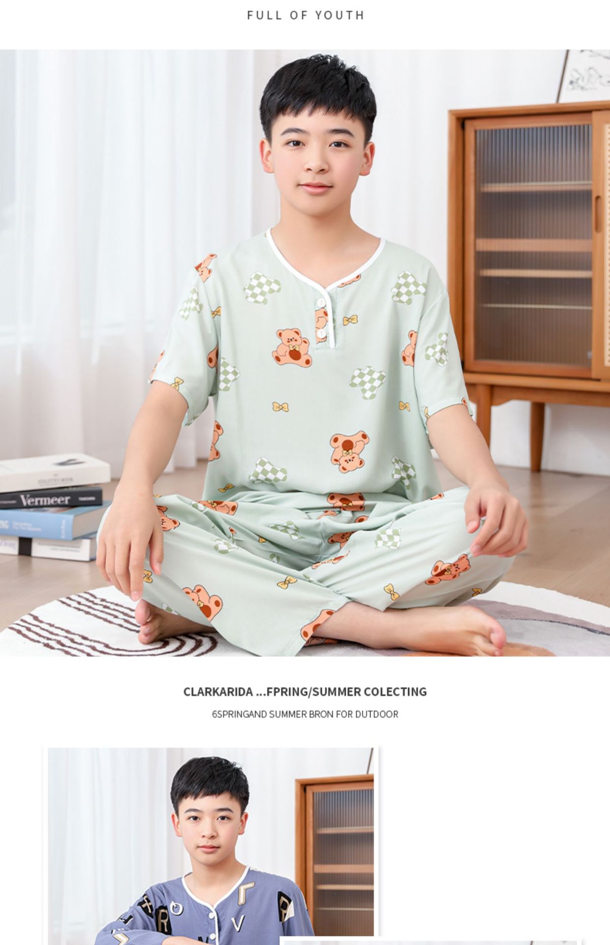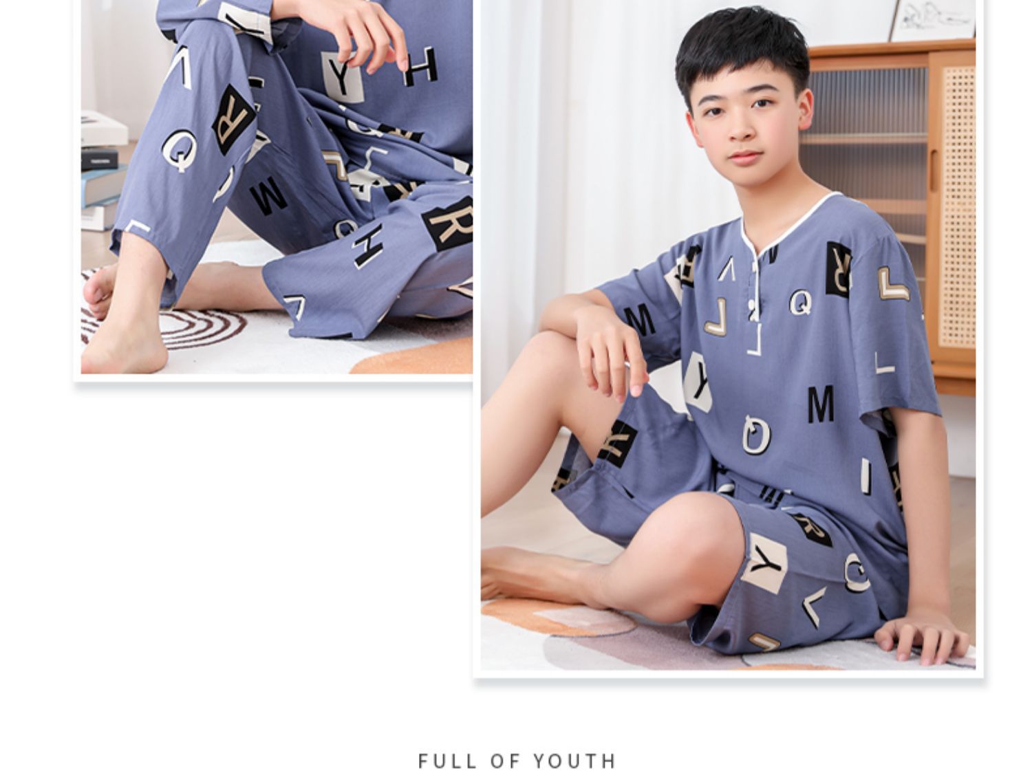 청소년 면 실크 잠옷 소년 여름 긴팔 중학생 가정복 학생 큰 어린이 인공 면 양복스토어 가기